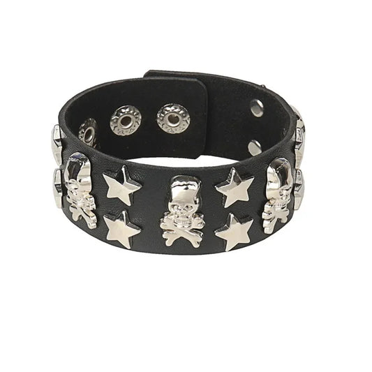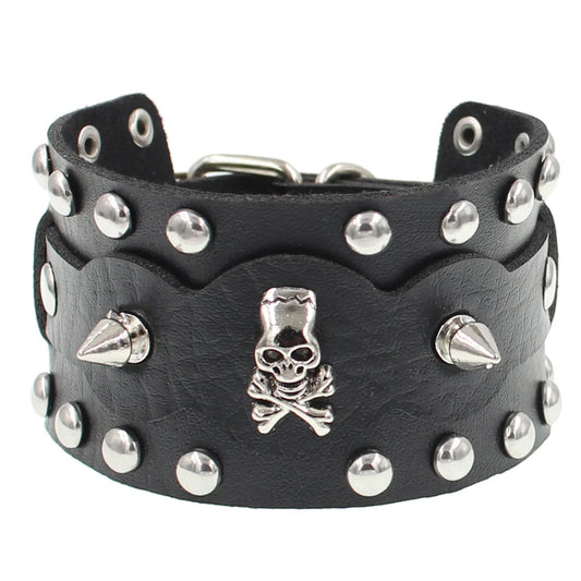 PU Leather Bracelet Punk Goth Studded Spike Rivet Buckle Wristband Cuff Bangle Black Gothic Steampunk for Men Women Unisex 80s