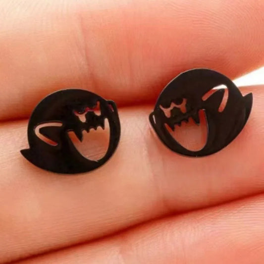 2pcs Stainless Steel Cute Cartoon Earrings Stud for Women, Silver Black Gold Earrings Piercing Jewelry Gift Minimalist
