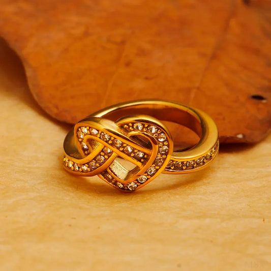 Minimalist Stainless Steel Heart Love Hollow Ring for Women Inlaid Zircon Rings Gold Color Waterproof Romantic Fashion Jewelry