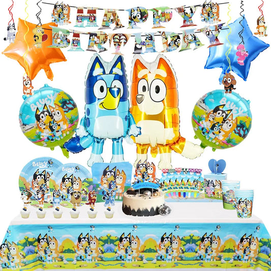 New Bluey Birthday Party Decoration Latex Balloons Bingo Aluminum Film Balloon Disposable Tableware Kids Event Supplies Backdrop