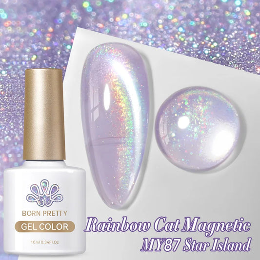 BORN PRETTY 10ml Rainbow Purple Water Light Cat Magnetic Gel Nail Polish Shining Super Sliver-light Holographics Soak Off UV Gel