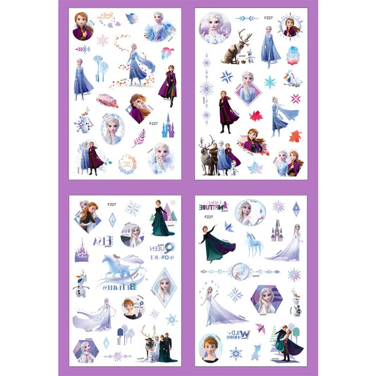 4Pcs/set Tattoo stickers Disney Stitch Princess Sofia Unicorn Frozen Action Cars Cartoon Sticker For Birthday Party Gift
