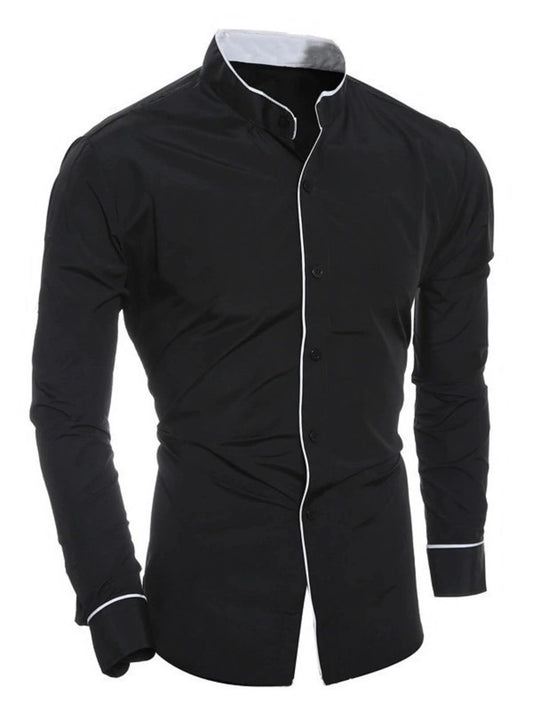 Spring and autumn men's long-sleeved solid color shirt, stand-up collar comfortable button-down fashionable slim shirt
