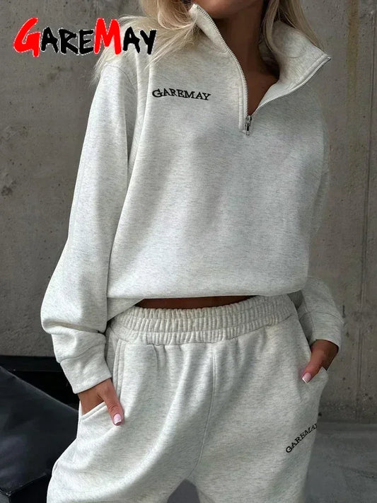 Autumn Women's Tracksuit with Zipper Cotton Oversize White Casual Two Piece Set Women Classic Sports Trouser Suits for Women