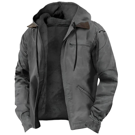 Men Autumn Winter Hooded Cotton Clothes Casual Velvet Zipper Pocket Hoodie Jacket Coat Sweatshirt Suit Jackets