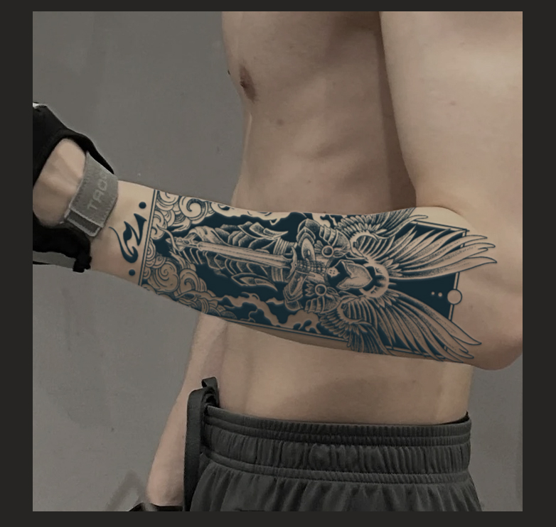 1. Schneiden Sie den gewünschten Tattoo-Aufkleber aus und reißen Sie die transparente Folie ab