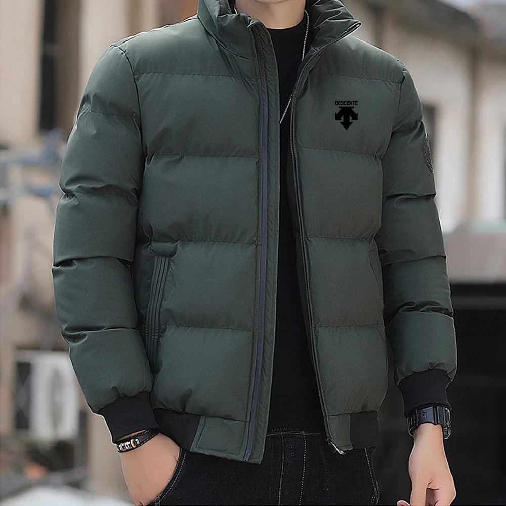 A new men's casual stand-up collar down cotton thermal jacket for winter 2026, a fashionable cotton jacket for outdoor sports