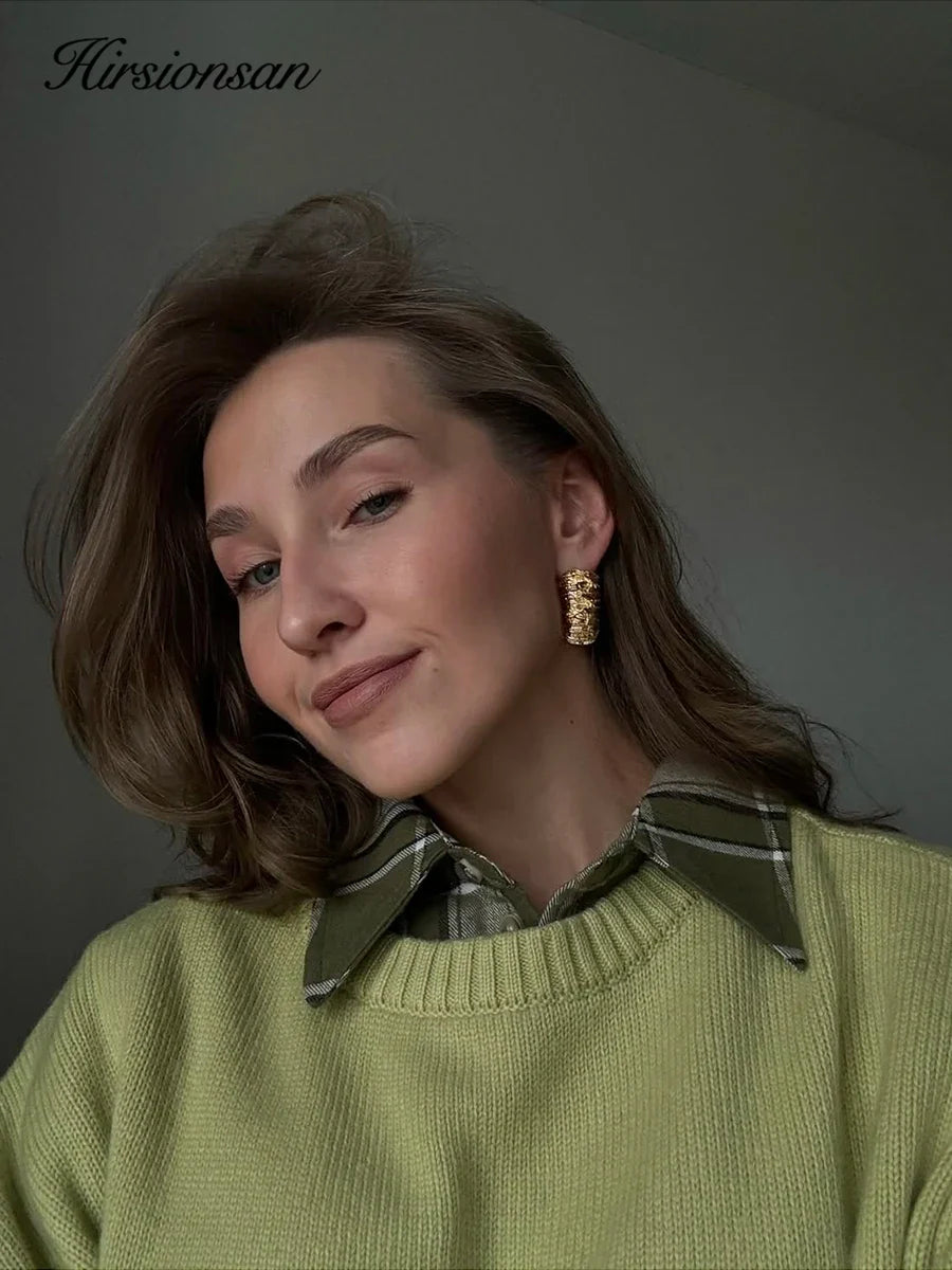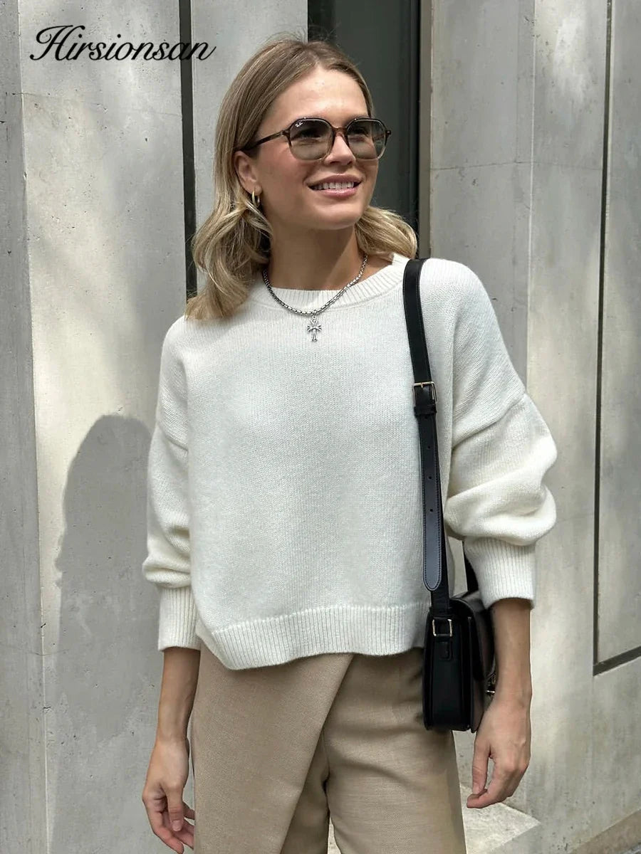 Hirsionsan Basic O Neck Basic Sleeve Sweater Women 2025 Oversized Short Knitted Pullovers Female Casual Thick Warm Soft Tops