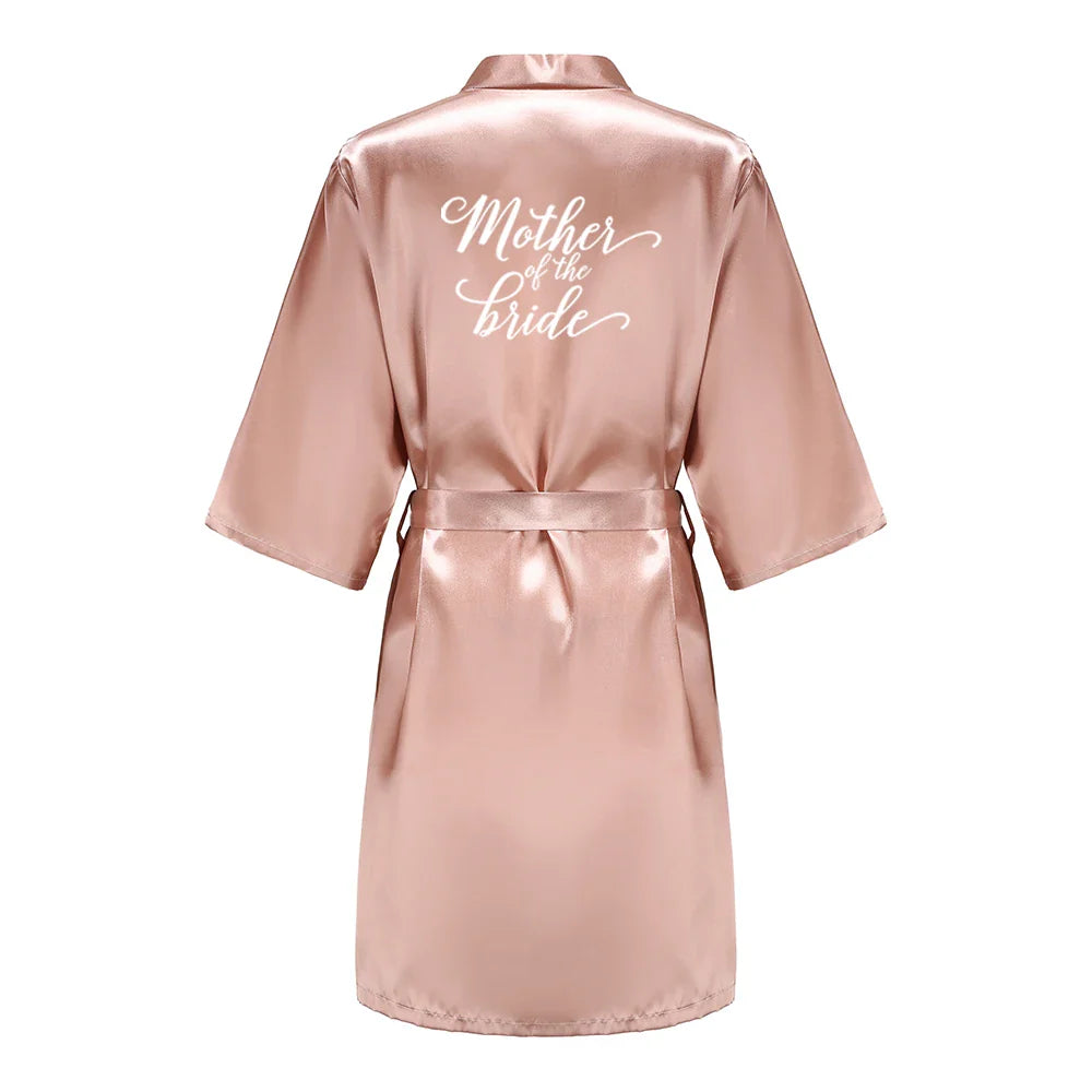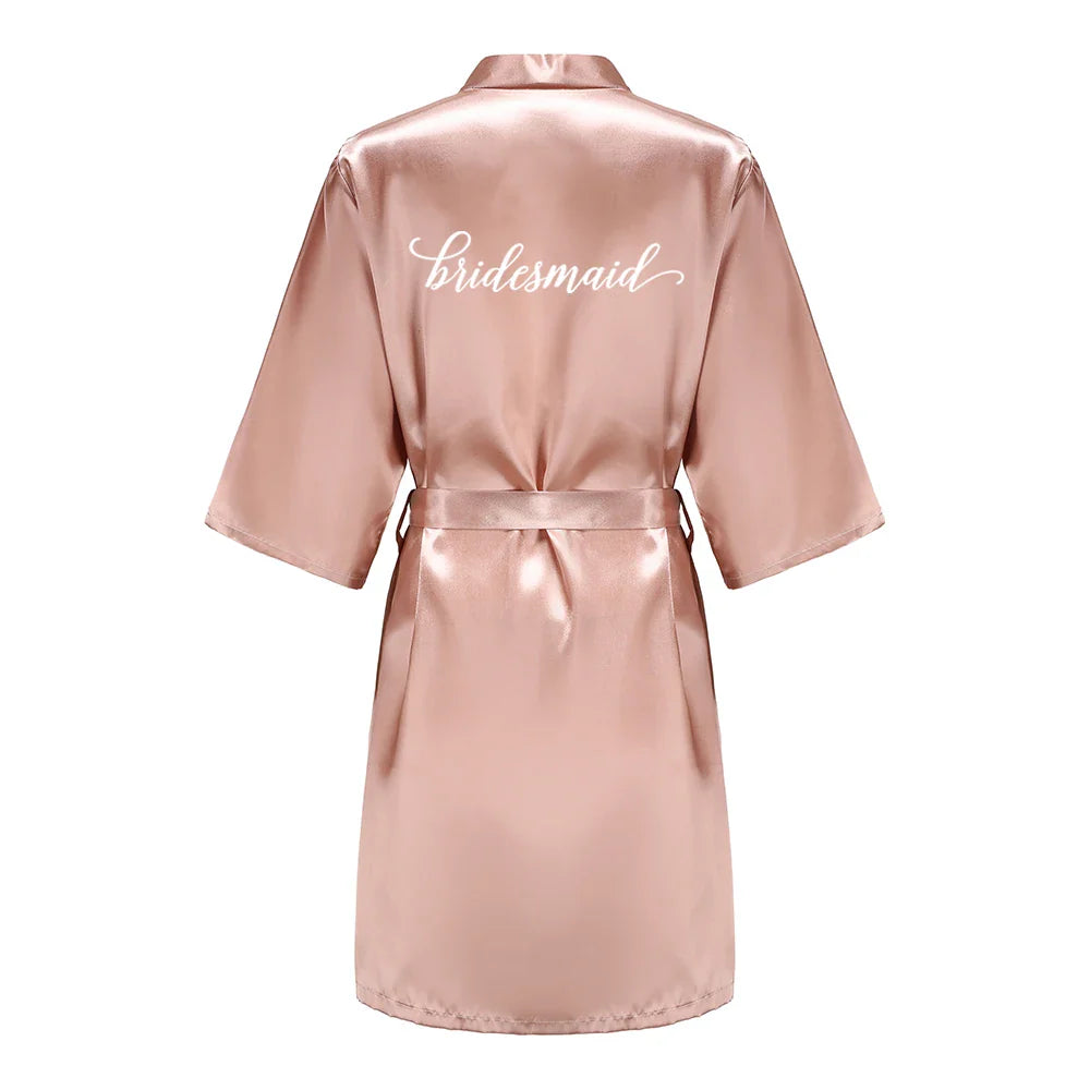 Rose Gold Satin Team Bride Bridesmaid Robe Wedding Bathrobe Gown Women Dressing Sleepwear Mother Maid of Honor Kimono