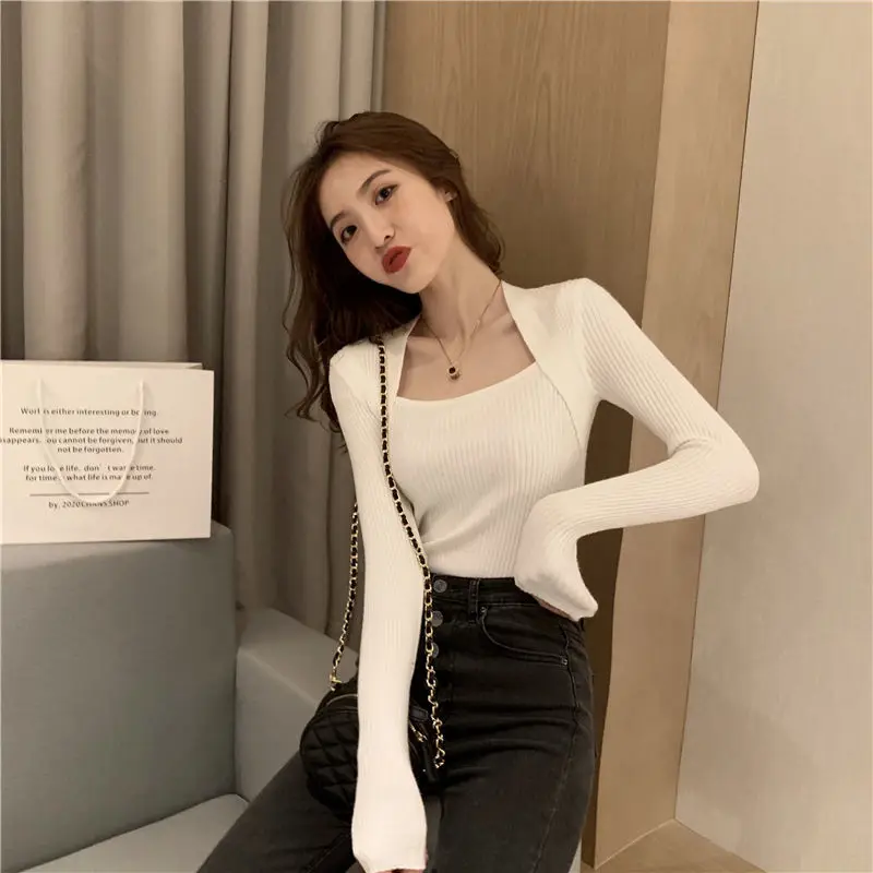 Women's Long Sleeve Pullover Sweater Basic Elastic Knitted Jumper Solid Autumn Winter Fashion Top Female Knittedwear