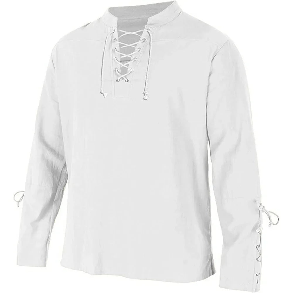 Name:?Men's Long Sleeve Shirts Lace Up V-neck Cuff Medieval Pirate Dress Up Streetwear Halloween Gothic Punk Style Men's Clothing