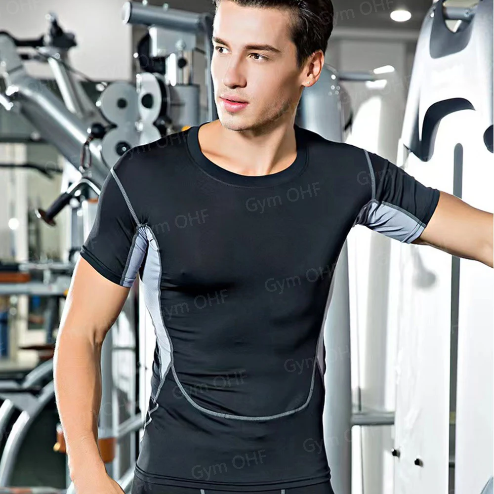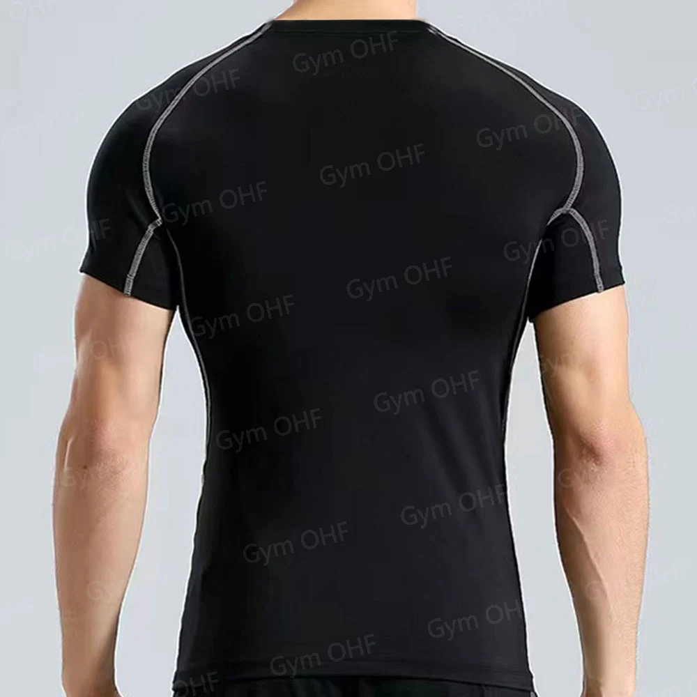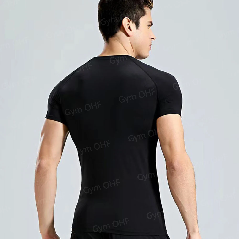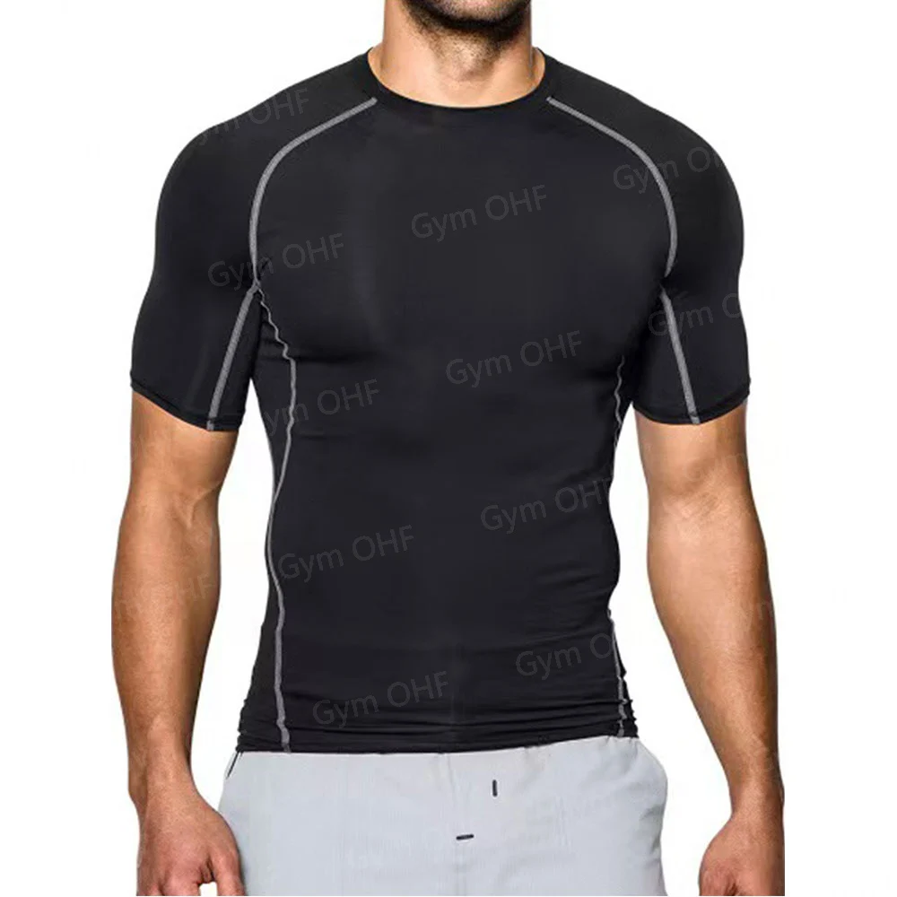 Men's Solid Color Short Sleeved T-shirt Compressed Quick Drying Breathable Training Suit Fitness Jujitsu Rashguard Top Gym Sport