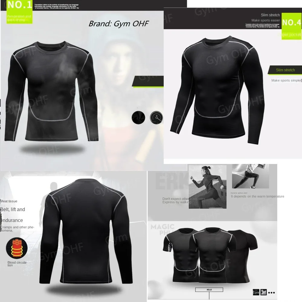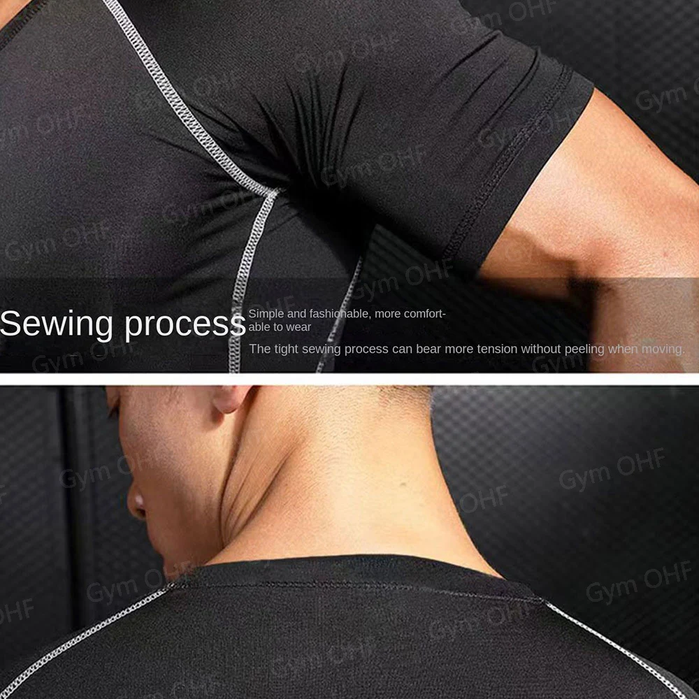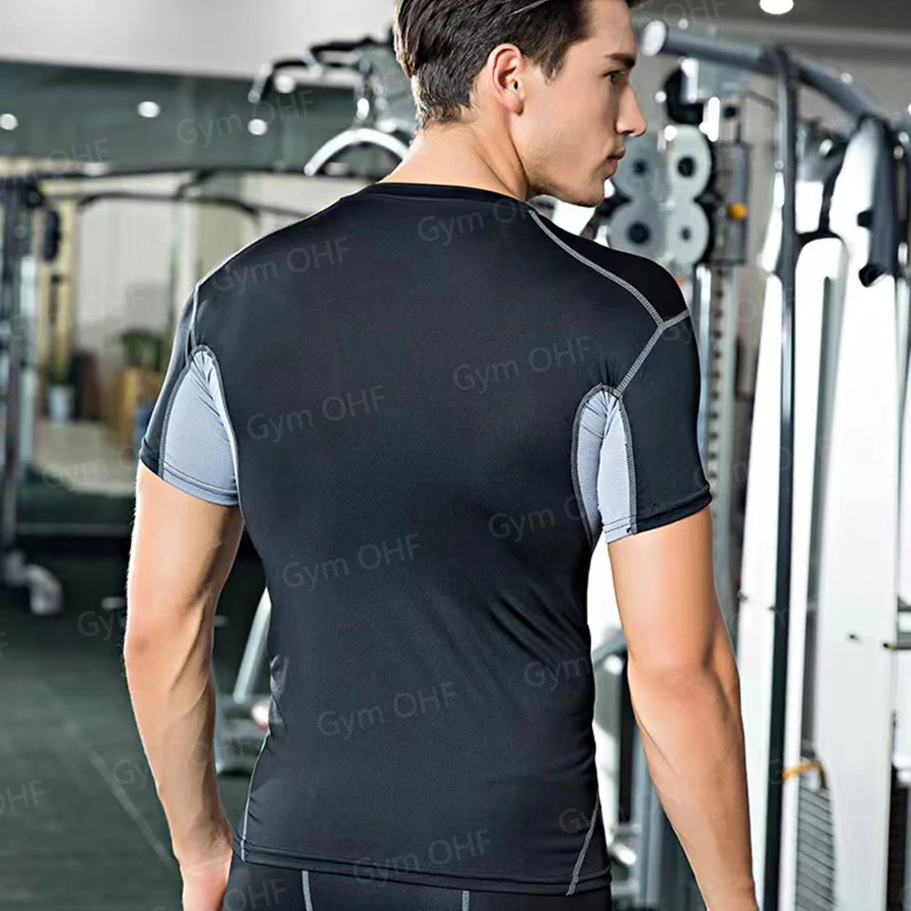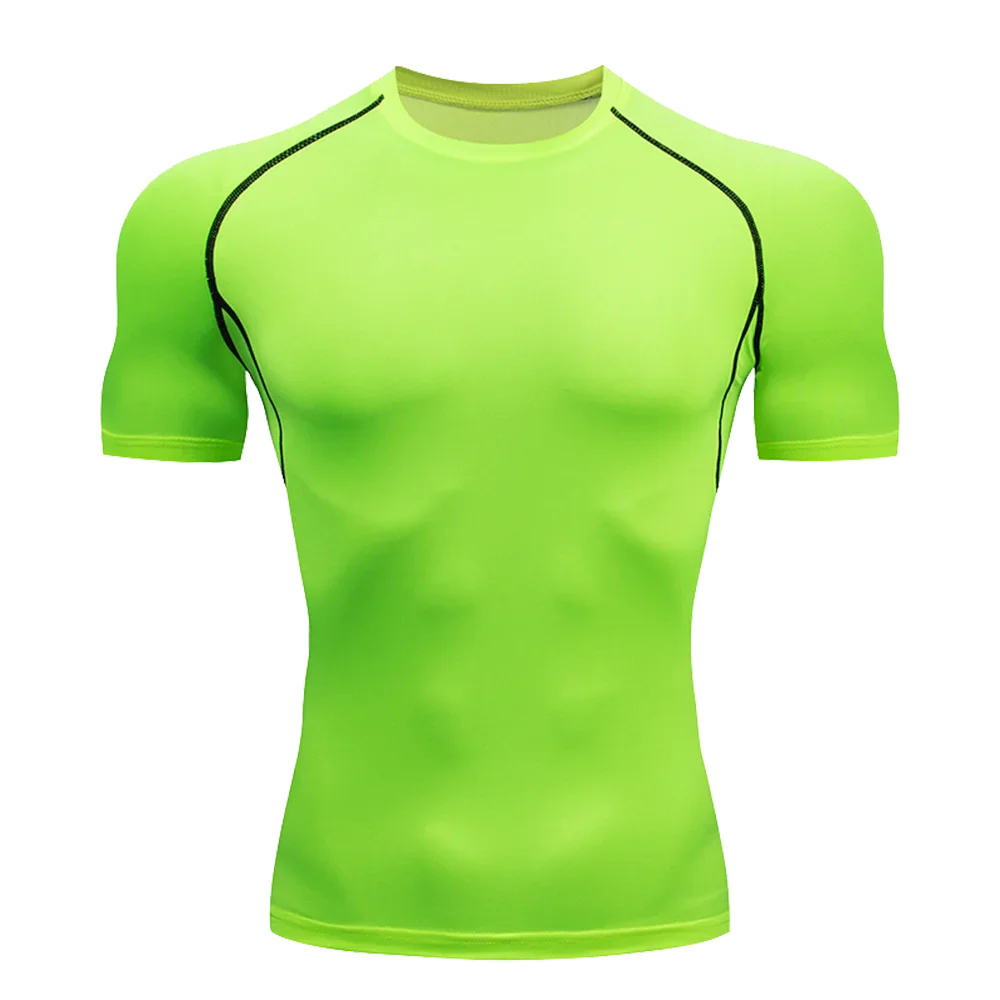 Men's Solid Color Short Sleeved T-shirt Compressed Quick Drying Breathable Training Suit Fitness Jujitsu Rashguard Top Gym Sport