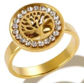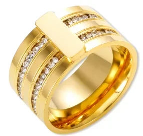 Shiny Crystal High End Non Tarnish Fashion Geometric Open Gold Plated Stainless Steel Rings for Women Wedding Ring Jewelry Gifts