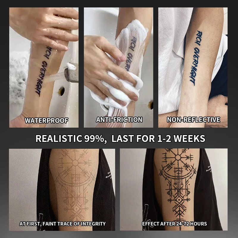 Waterproof, semi-permanent, lasting 12 to 15 days without damage, and gradually disappears with the metabolism of the skin's stratum corneum, and can be bathed and exposed to water normally