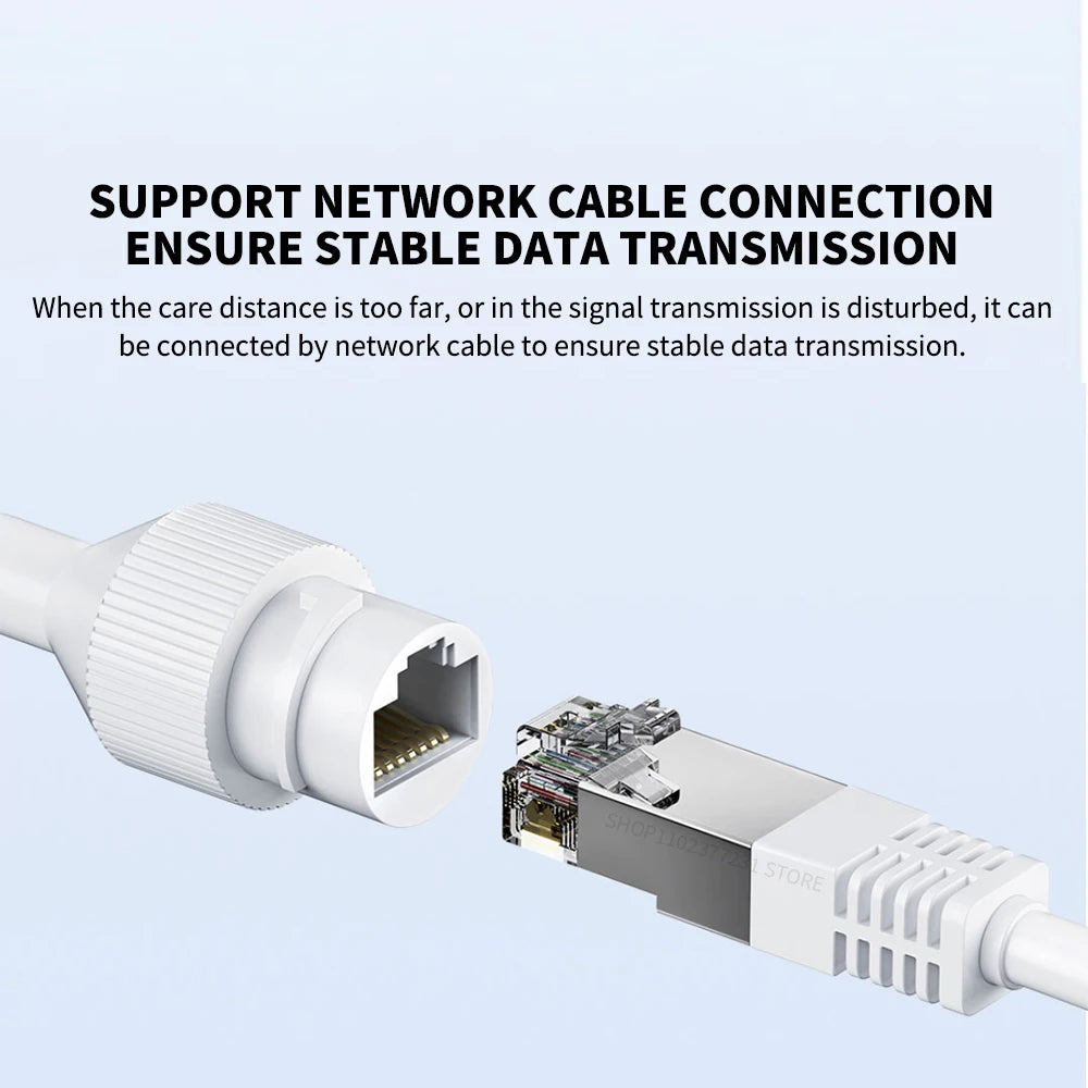 When the monitoring distance is too far or the signal transmission is interfered, you can connect through a network cable to ensure stable data transmission.