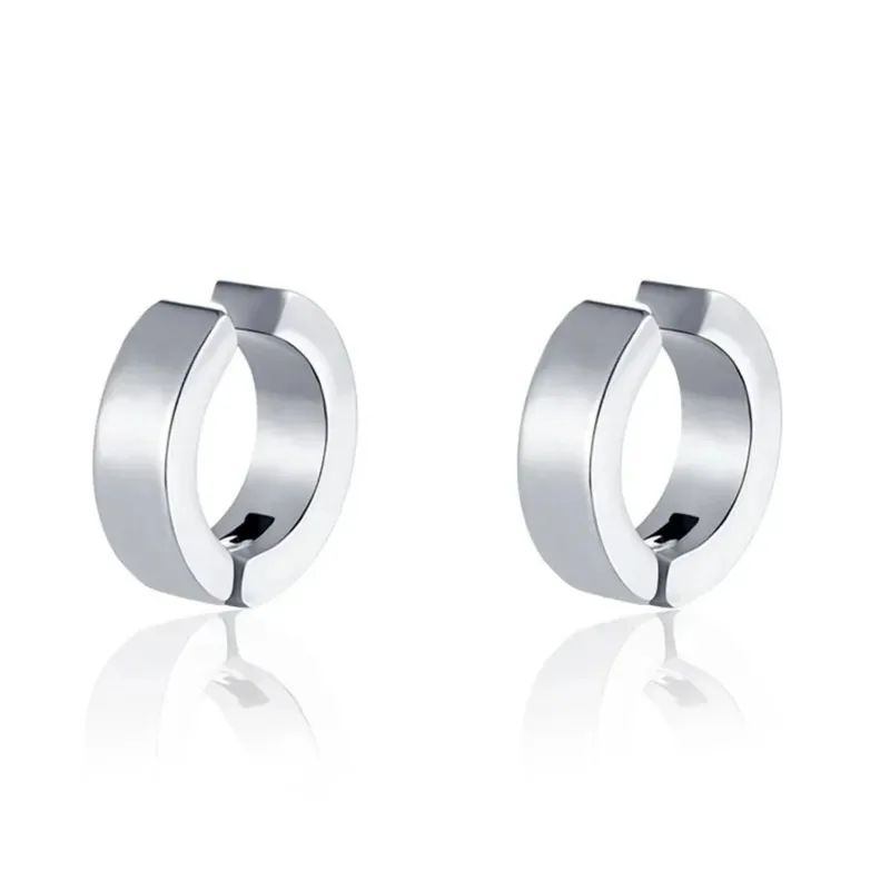 2pcs Punk Non Piercing Clip Earrings for Man Woman, Titanium Steel Stud Earrings Teens Hip Hop Style Ear Ring Jewelry Accessory