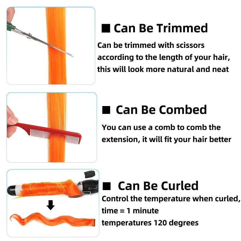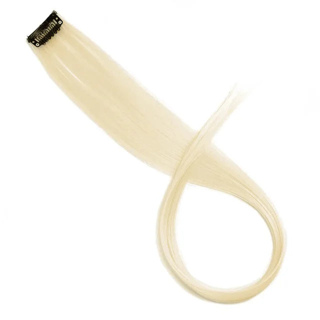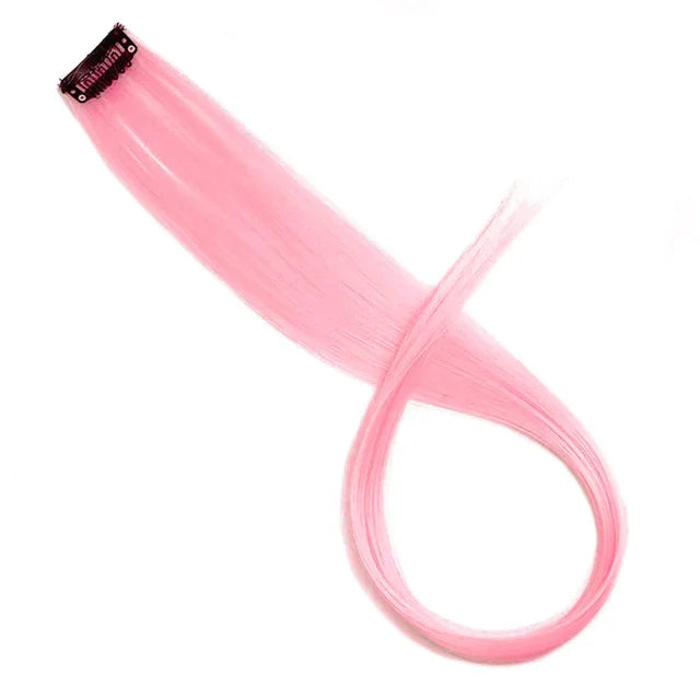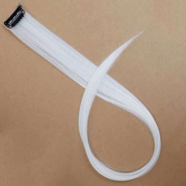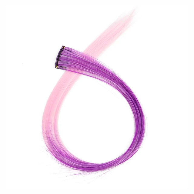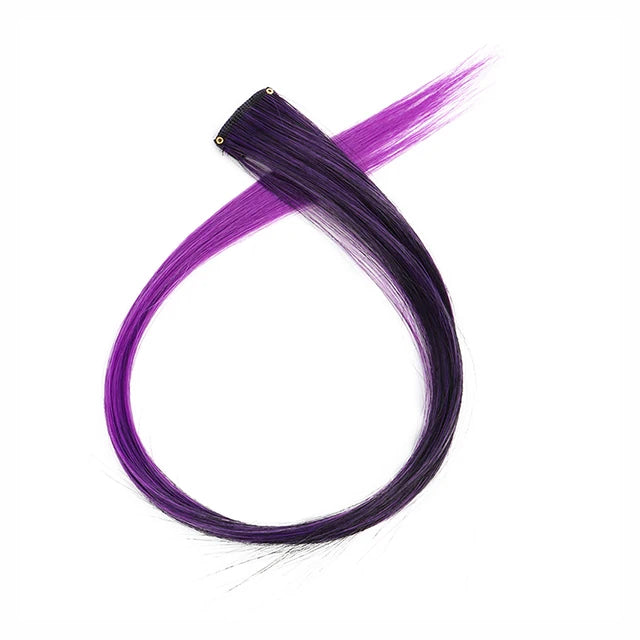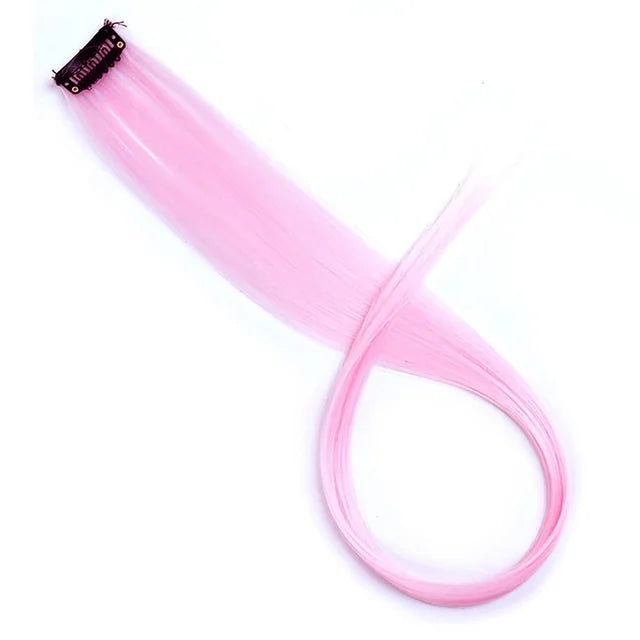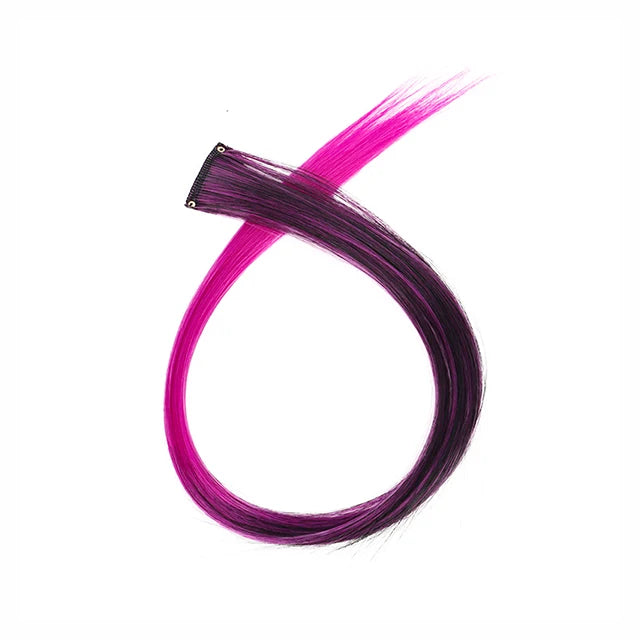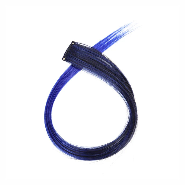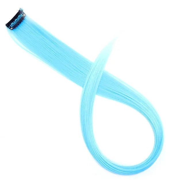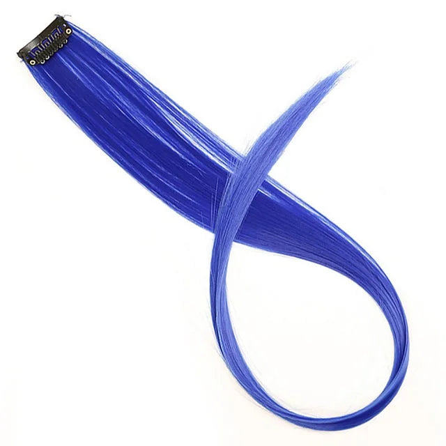 5PCS 22Inch Synthetic Long Straight Hair Clips Rainbow Hair Extension Colored Red Green Blue Hairpiece for Women
