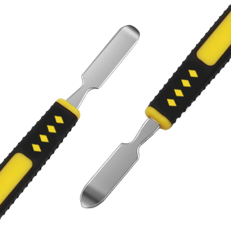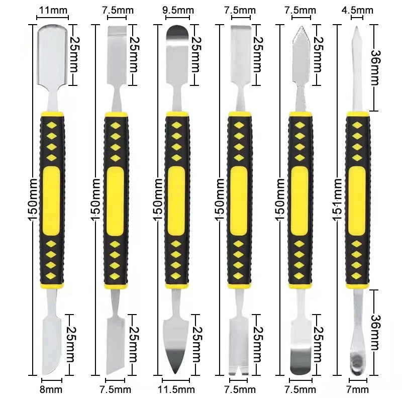 Plastic resin, anti slip handle. Alloy material, available for both ends.