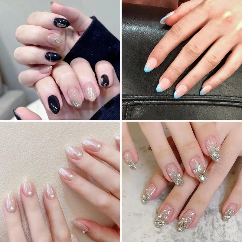 600Pcs Nail Tips Short Almond Shaped Half Matte Clear Acrylic False Nail Tips for Nail Extension Manicure Tools