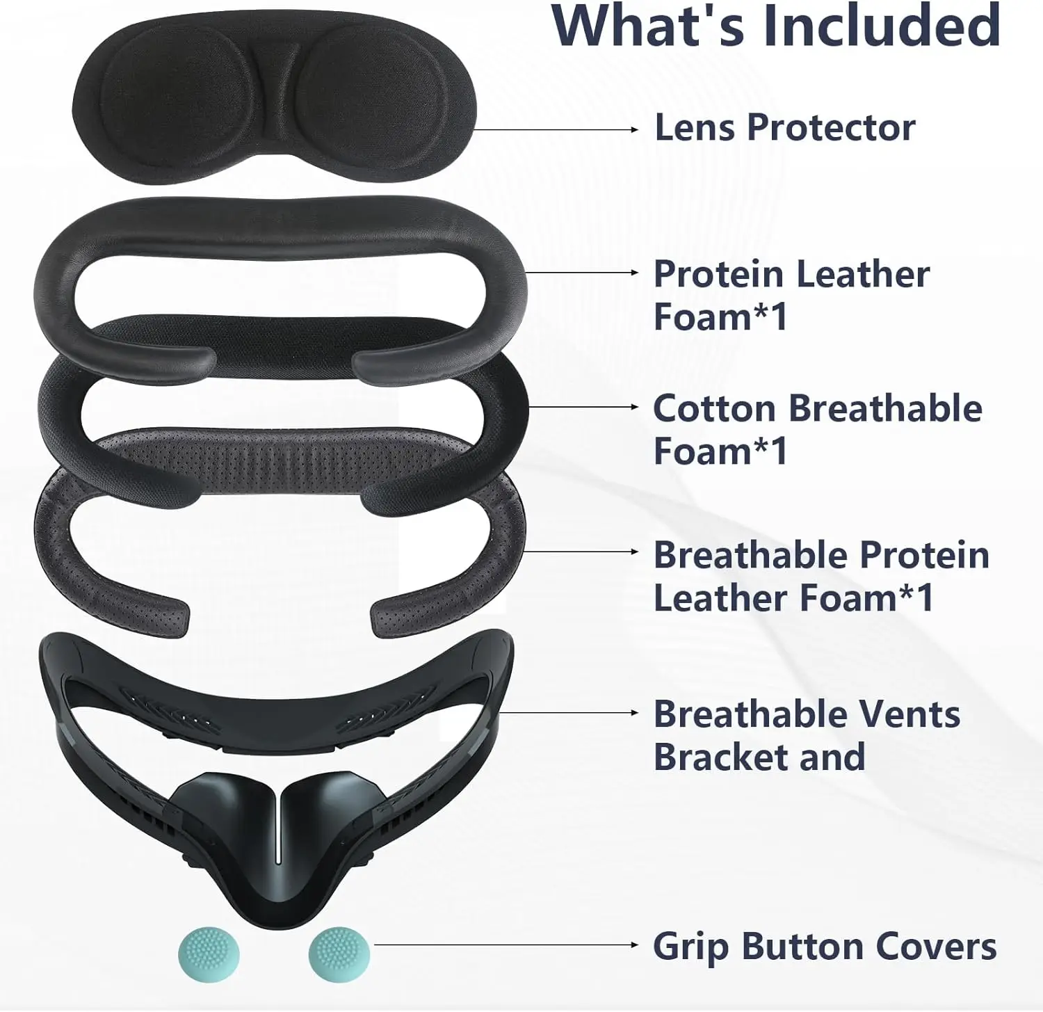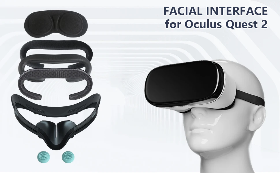 ¡¾Quest 2 Lens Interface Bracket Replacement Accessories¡¿ you will get 1*Oculus Quest 2 Facial Interface Bracket with Anti-leakage Nose Pad, 2 * PU Leather Foam Cover, 1*soft breathable Cloth Face Pad, 1*Oculus Quest VR Lens Cover, 2 * thumb caps