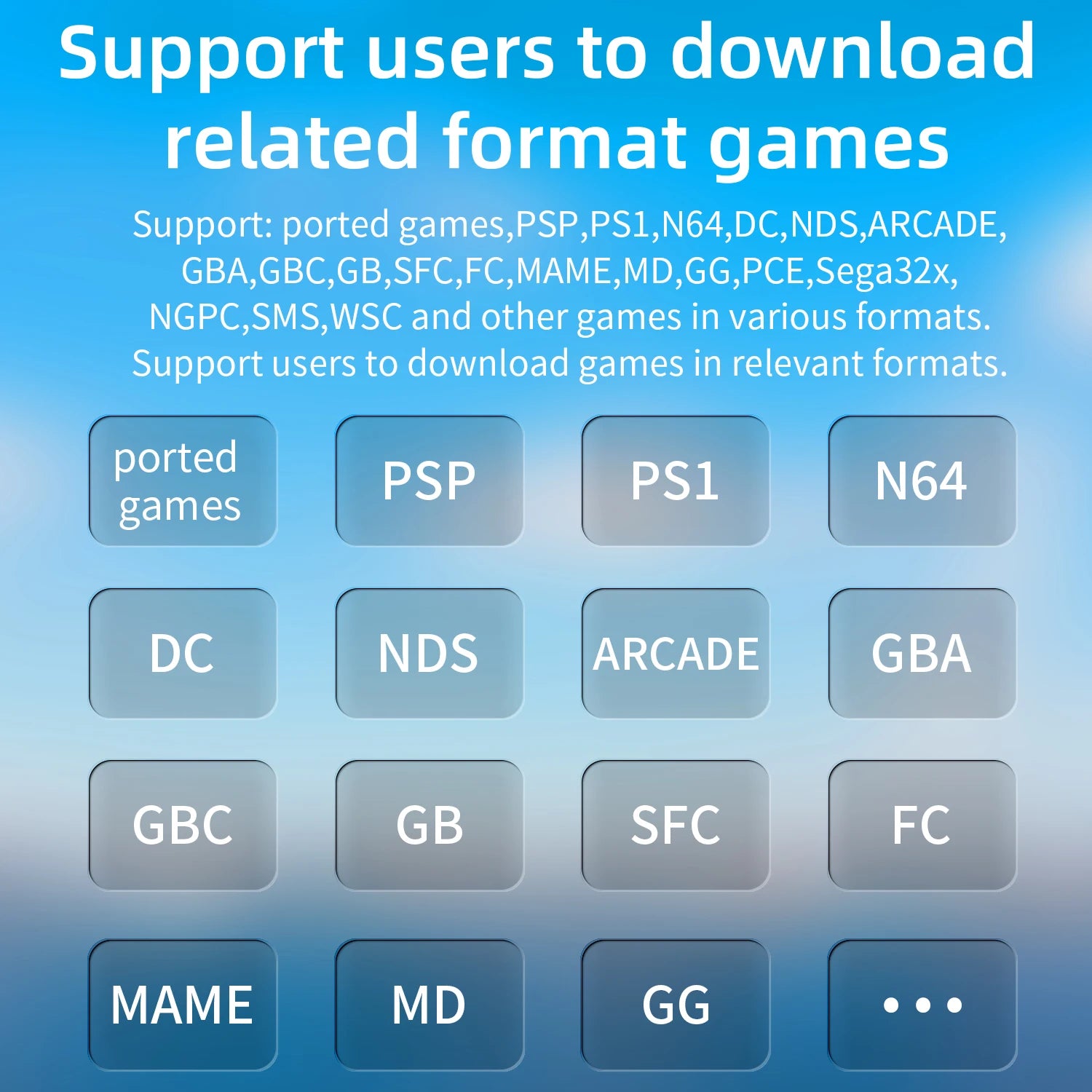 ¡ñ Games£º Supports: ported games, PSP, PS1, N64,DC, NDS,ARCADE, GBA, GBC, GB, SFC, FC, MAME, MD, GG, PCE, PCE-CD, NGPC, sega32x, SMS, WSC, and various other game formats. Supports users to download games in related formats themselves.
