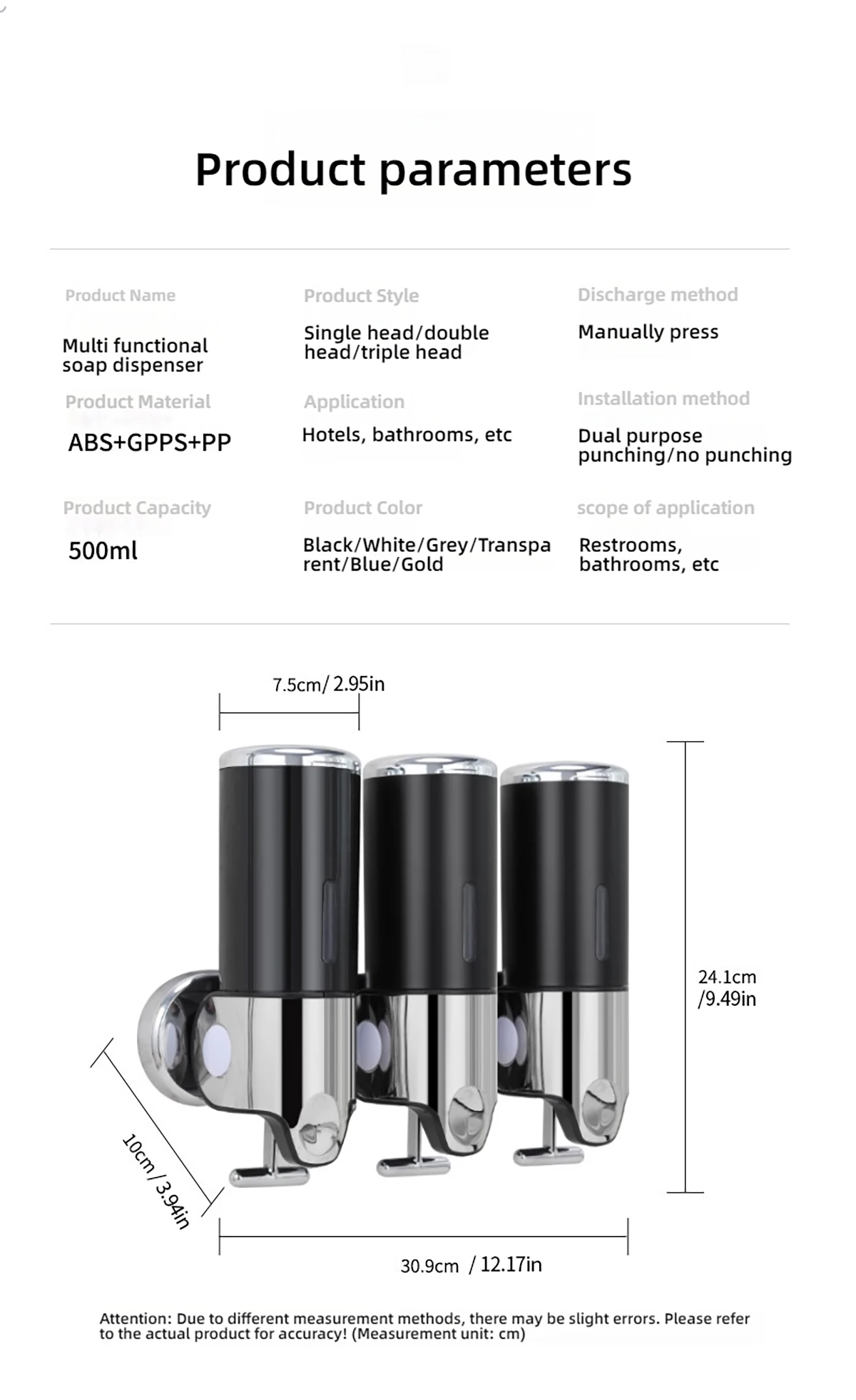 Bathroom wall mounted manual liquid soap dispenser soap dispenser shampoo dispenser hotel bathroom/toilet accessories