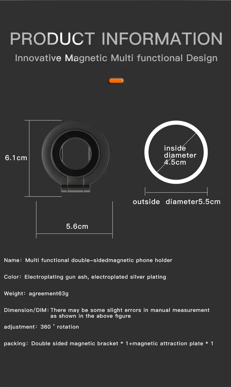 Double-Sided Holder Foldable 360?? Rotating Stand with Strong Magnet & Finger Grip Suppor