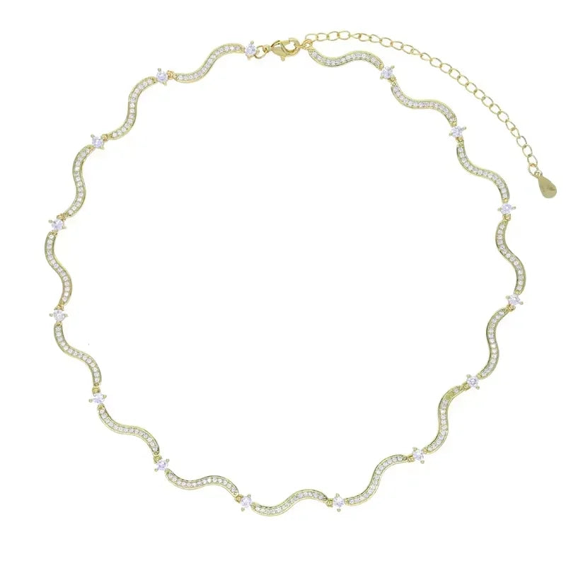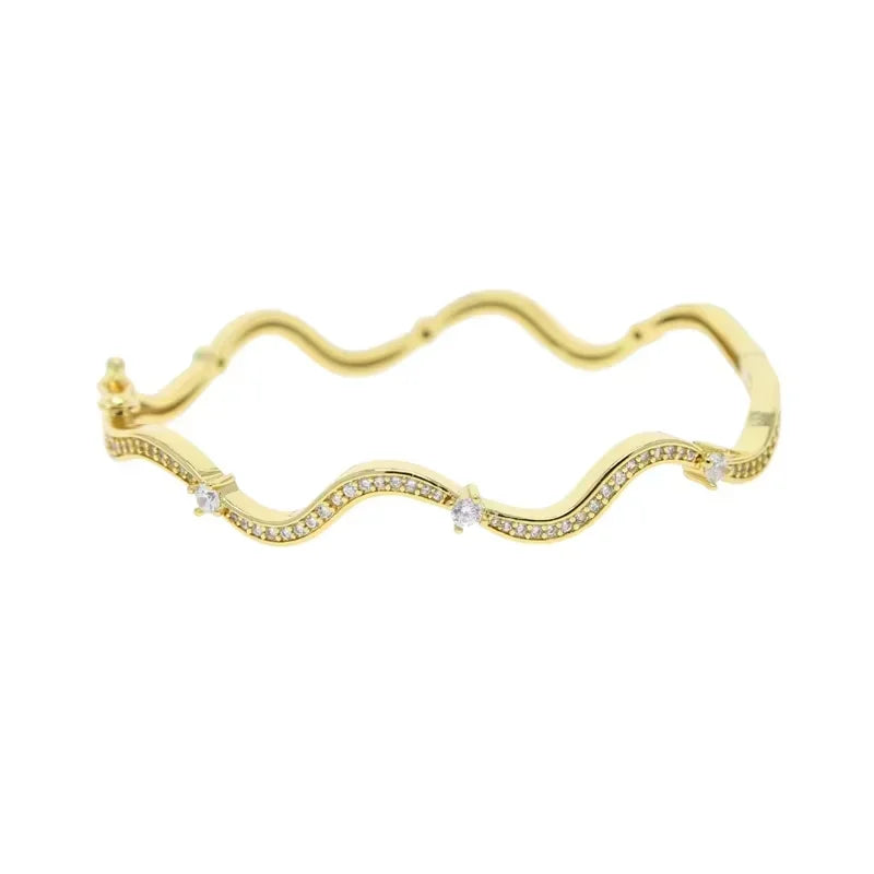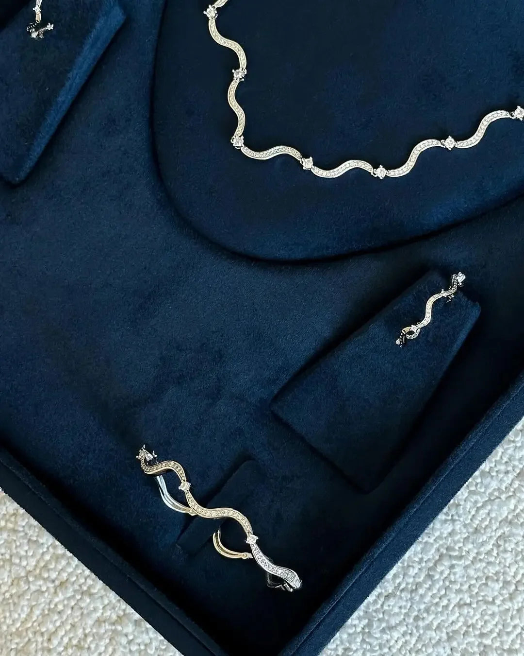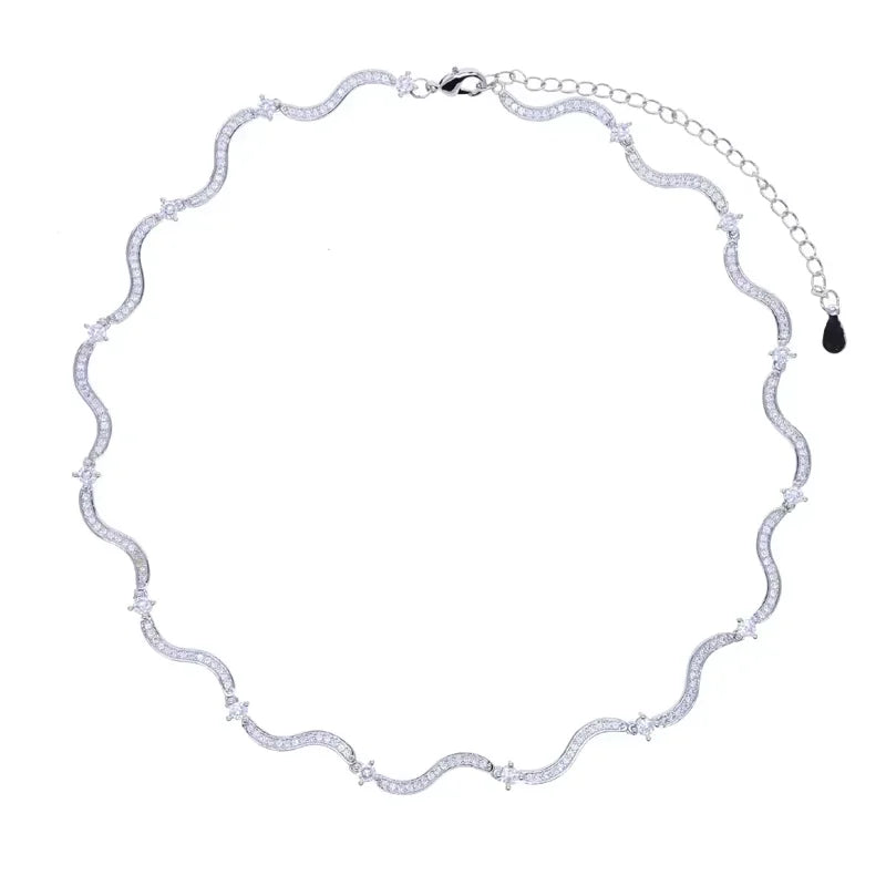 Hot Selling Fashion Women Jewelry Micro Paved 5A Cubic Zirconia CZ Wave Band Bracelet Ring Earring Necklace Set