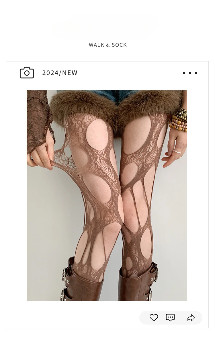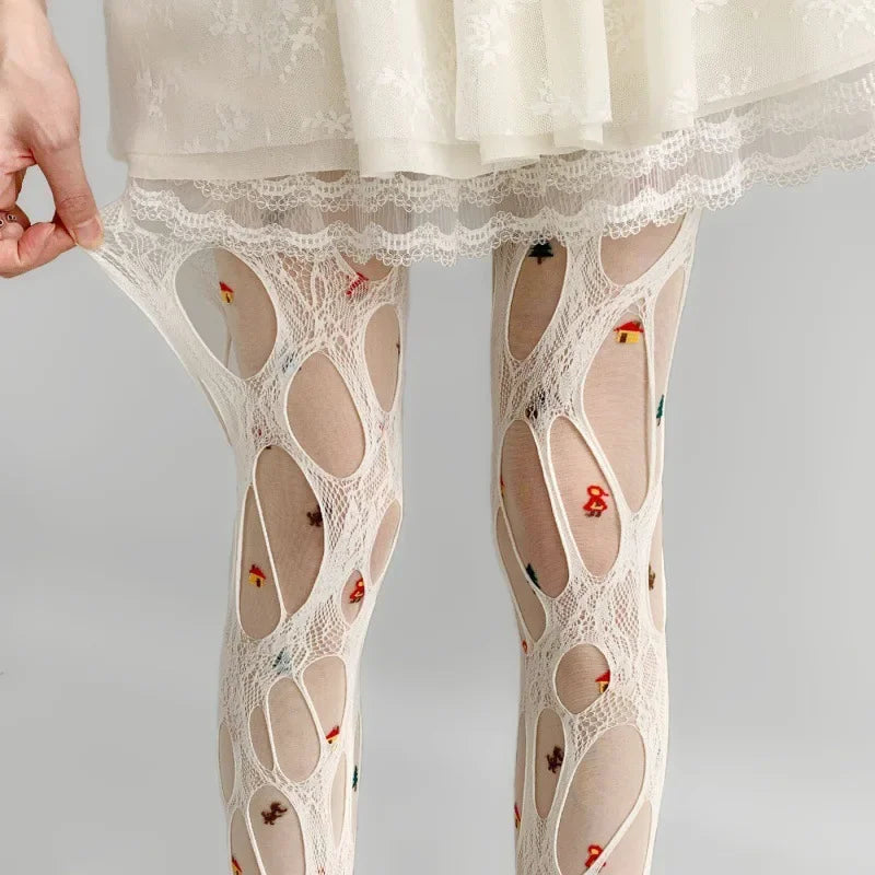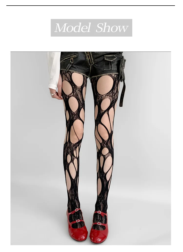 Gothic Women's Irregular Exposed Skin Tights Ripped Fishnet Thin Pantyhose Punk Y2K Hollowed-out Retro Lace Sexy Silk Stockings