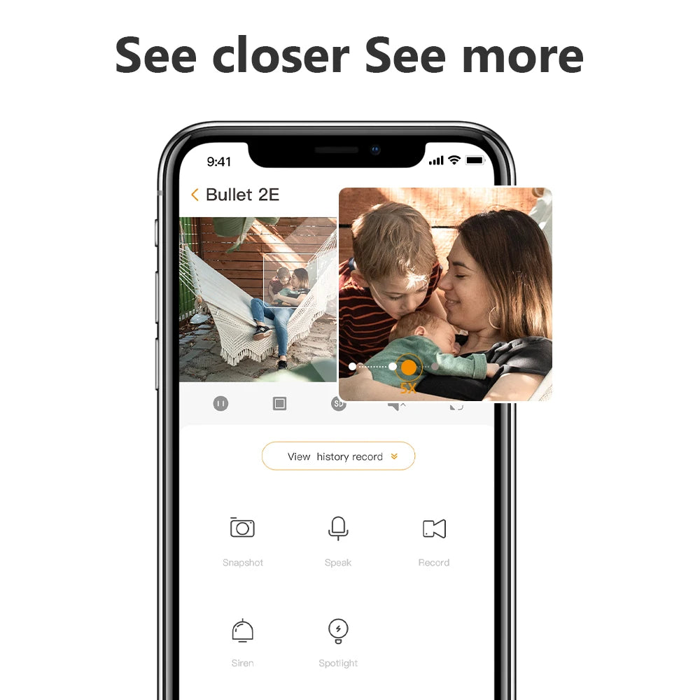 With built in recording micophone, the security camera could record the sound well so that you can hear what happened on app clearly.