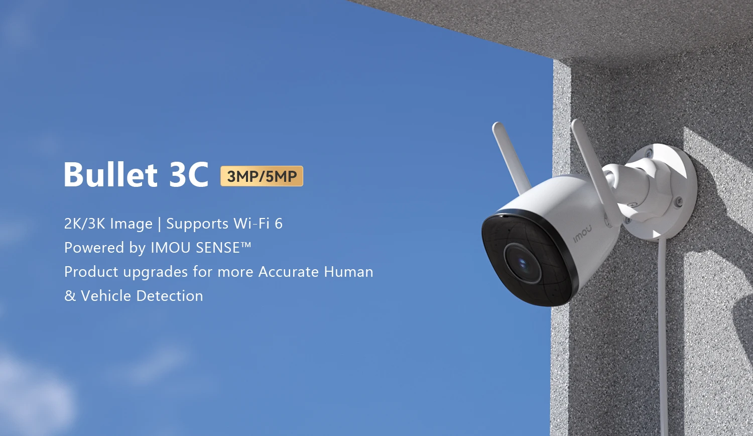 Bullet 3C 3MP/5MP support self-developed algorithm (IMOU SENSE), which makes human and vehicle detection