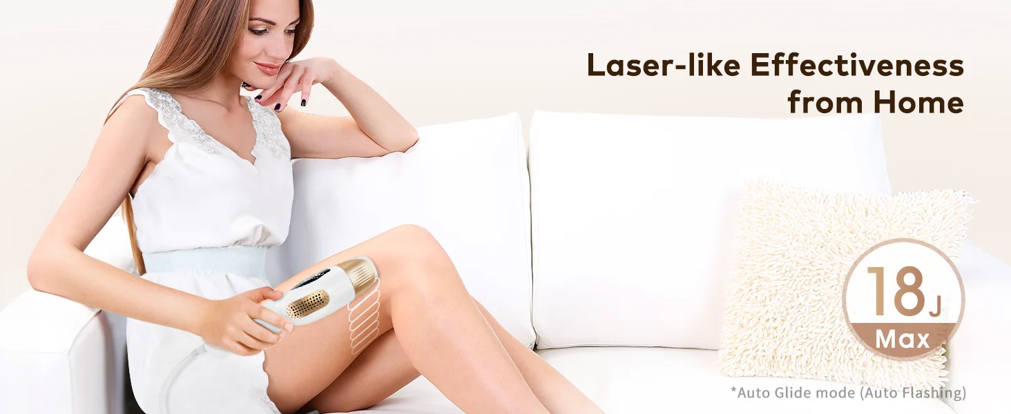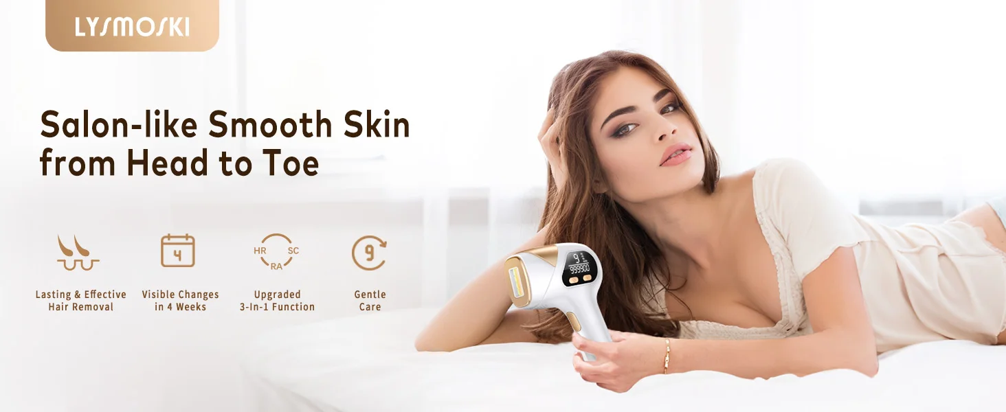 3-IN-1 FUNCTIONS (HR/RA/SC) - Upgraded hair removal device added 3 functions: HR/SC/RA to let you achieve the effect of skin care at the same time as hair removal.