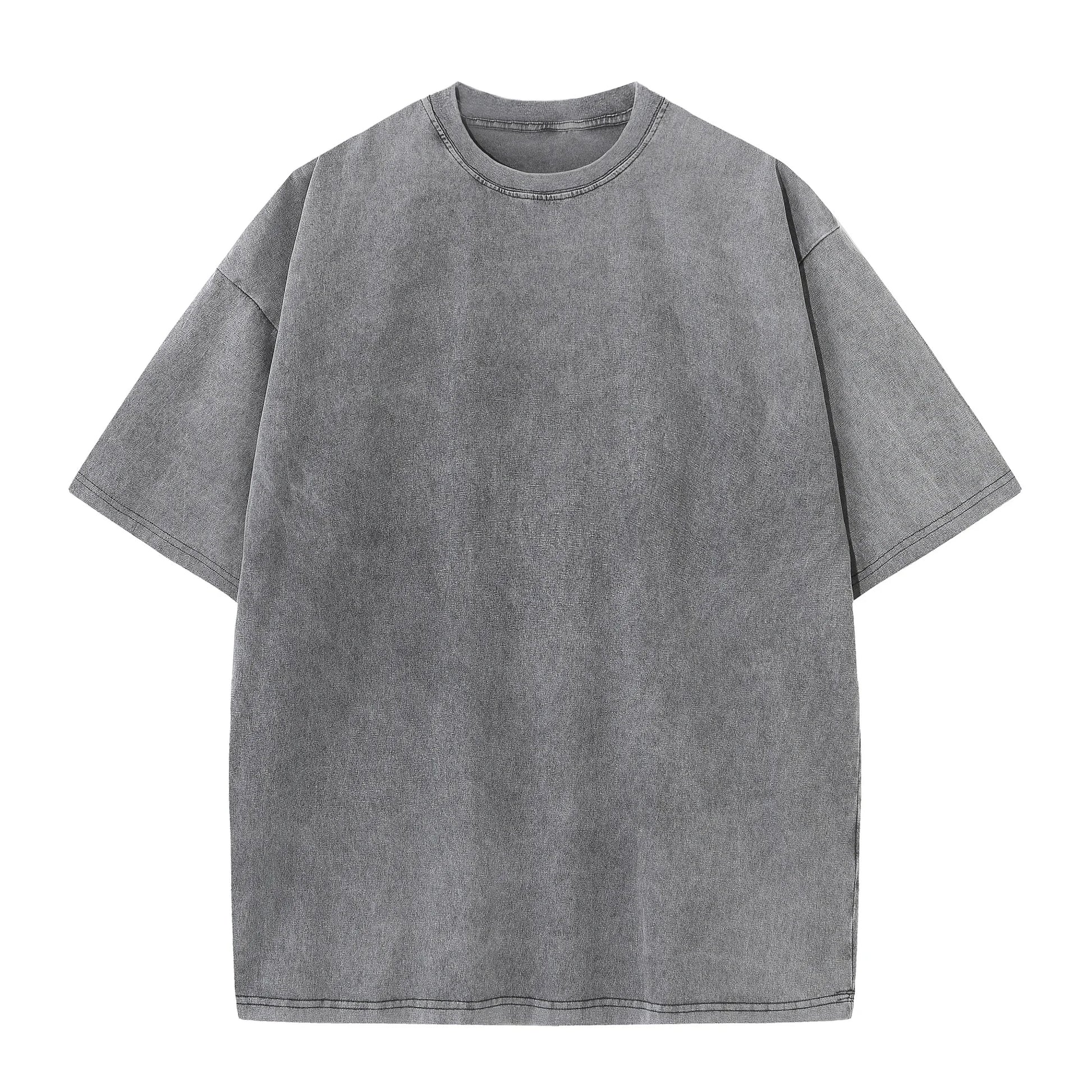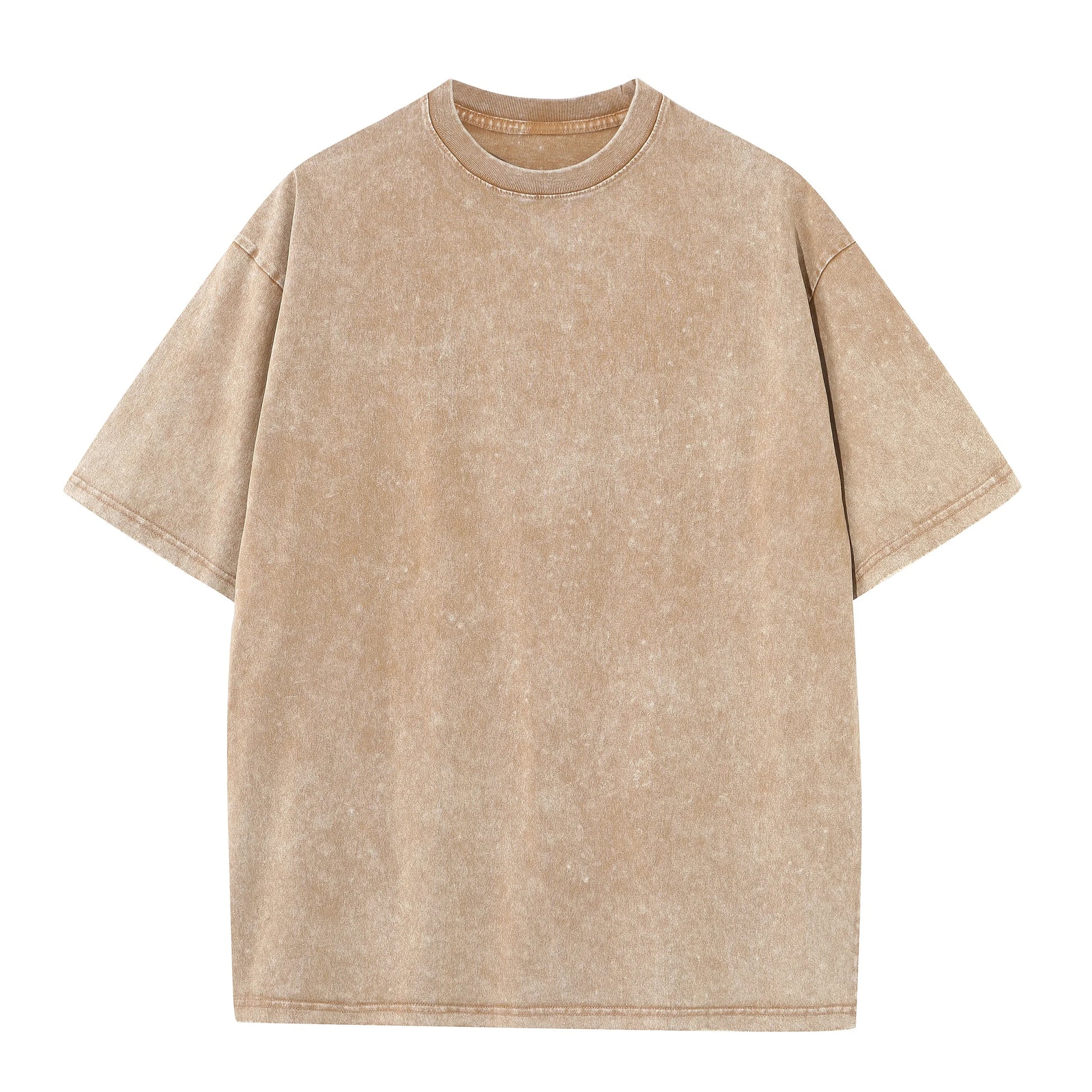 Men's summer pure cotton distressed retro drop shoulder T-shirt solid color loose casual breathable men's casual T-shirt tops