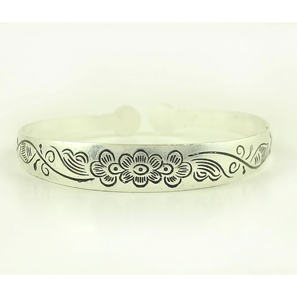 New Retro Cuff Bracelets Tibetan Silver Metal Carving Fish Elephant Flower Bangles Vintage Gypsy Jewelry Female Gifts