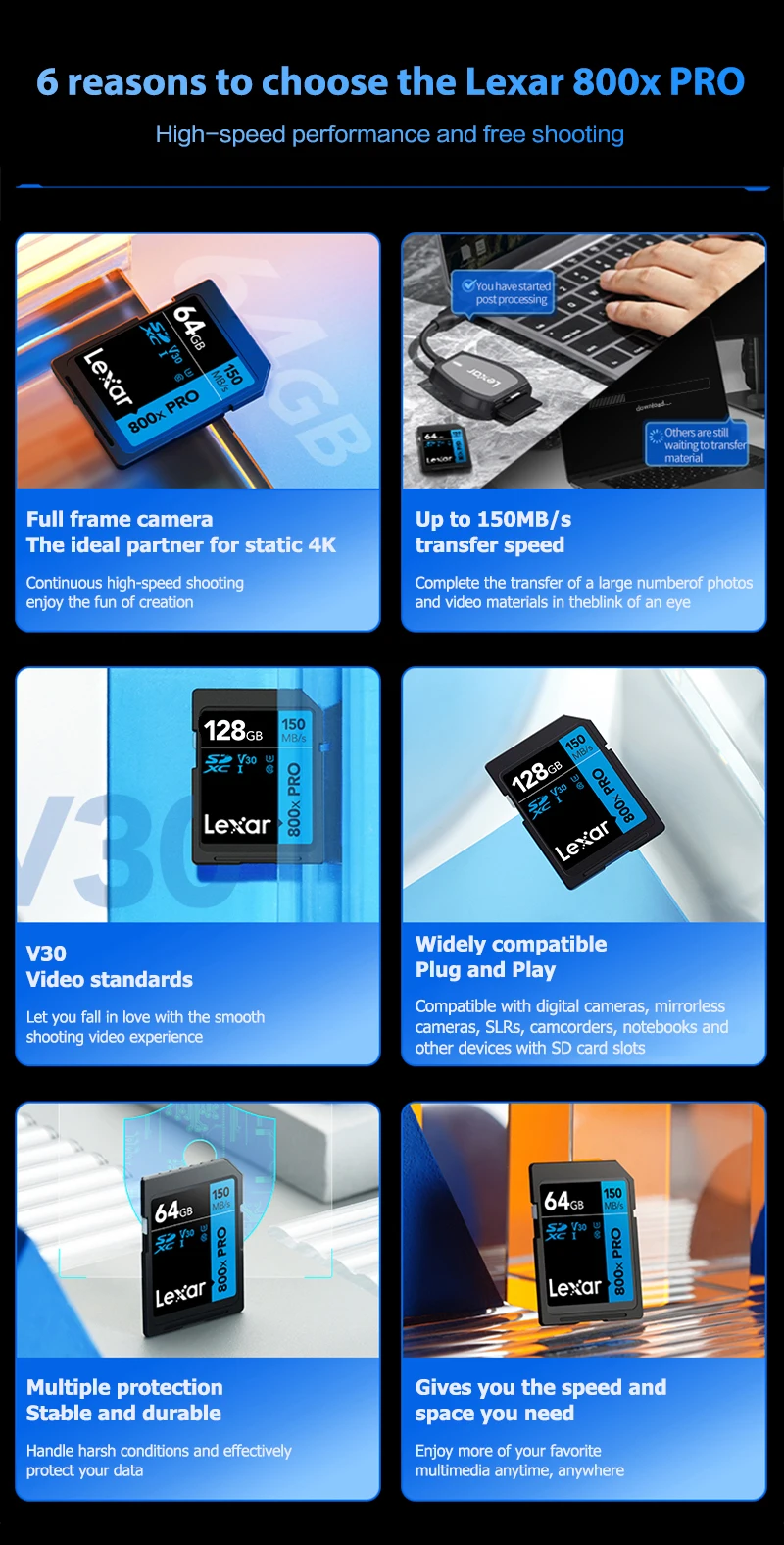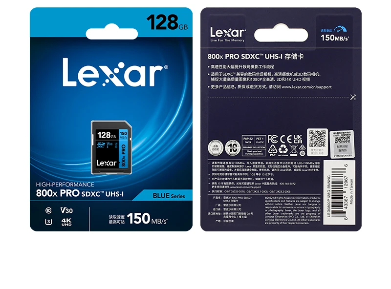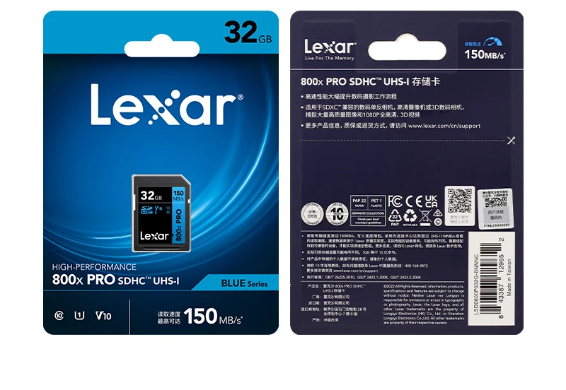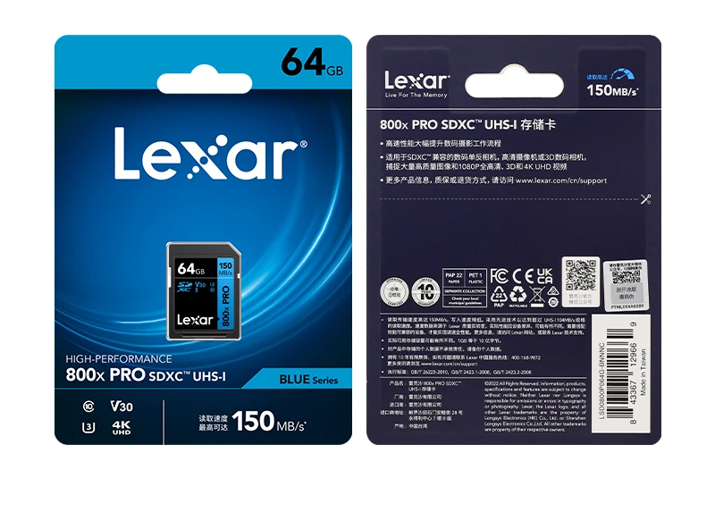 Original Lexar SD Card 800x Pro SDHC 32GB SDXC 64GB 128GB Read Max 150MB/s UHS-I Memory Card Storage Card Flash Card For Camera