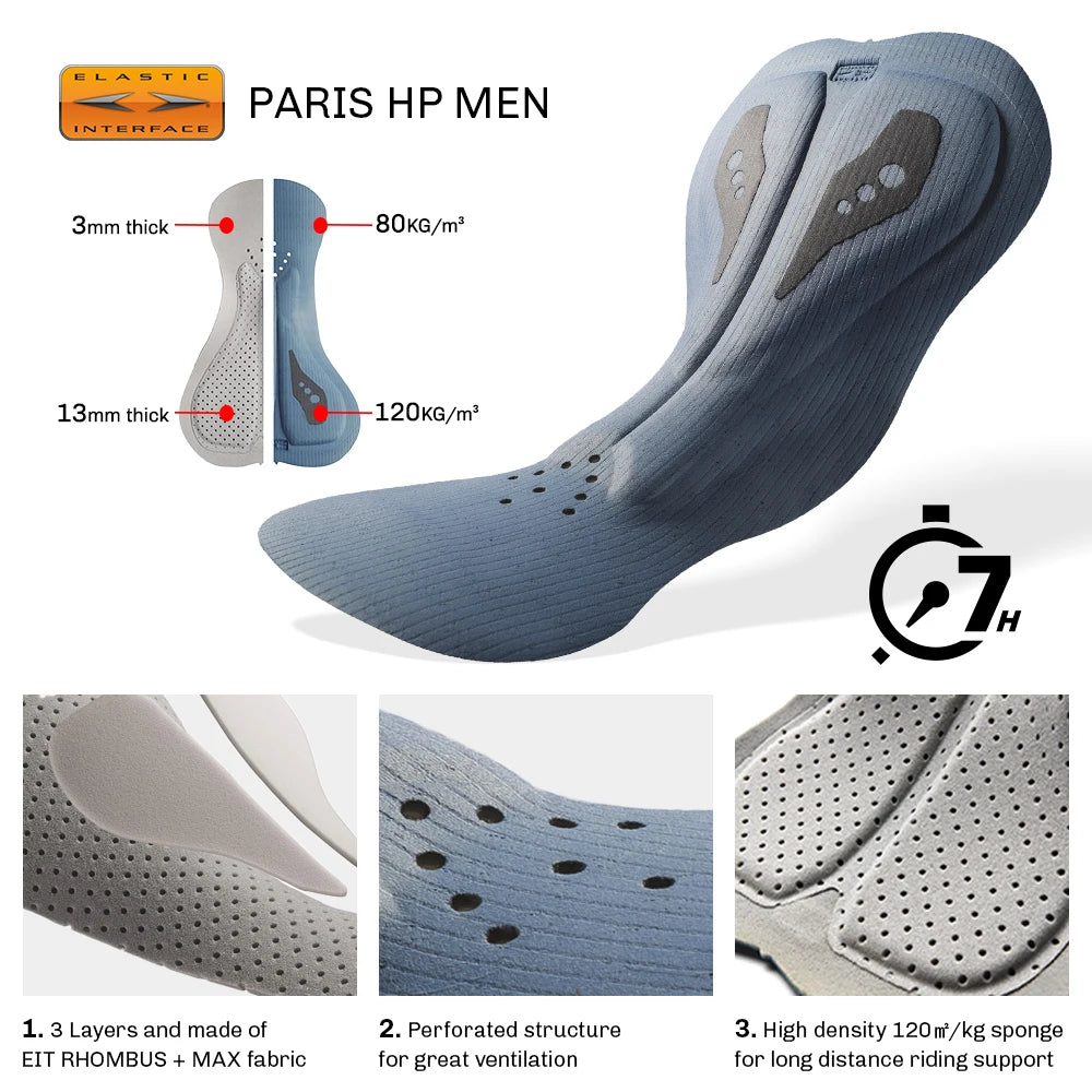 -Slim-Fit Cycling Bibs Shorts: provides better muscle control and reduces drag coefficient.