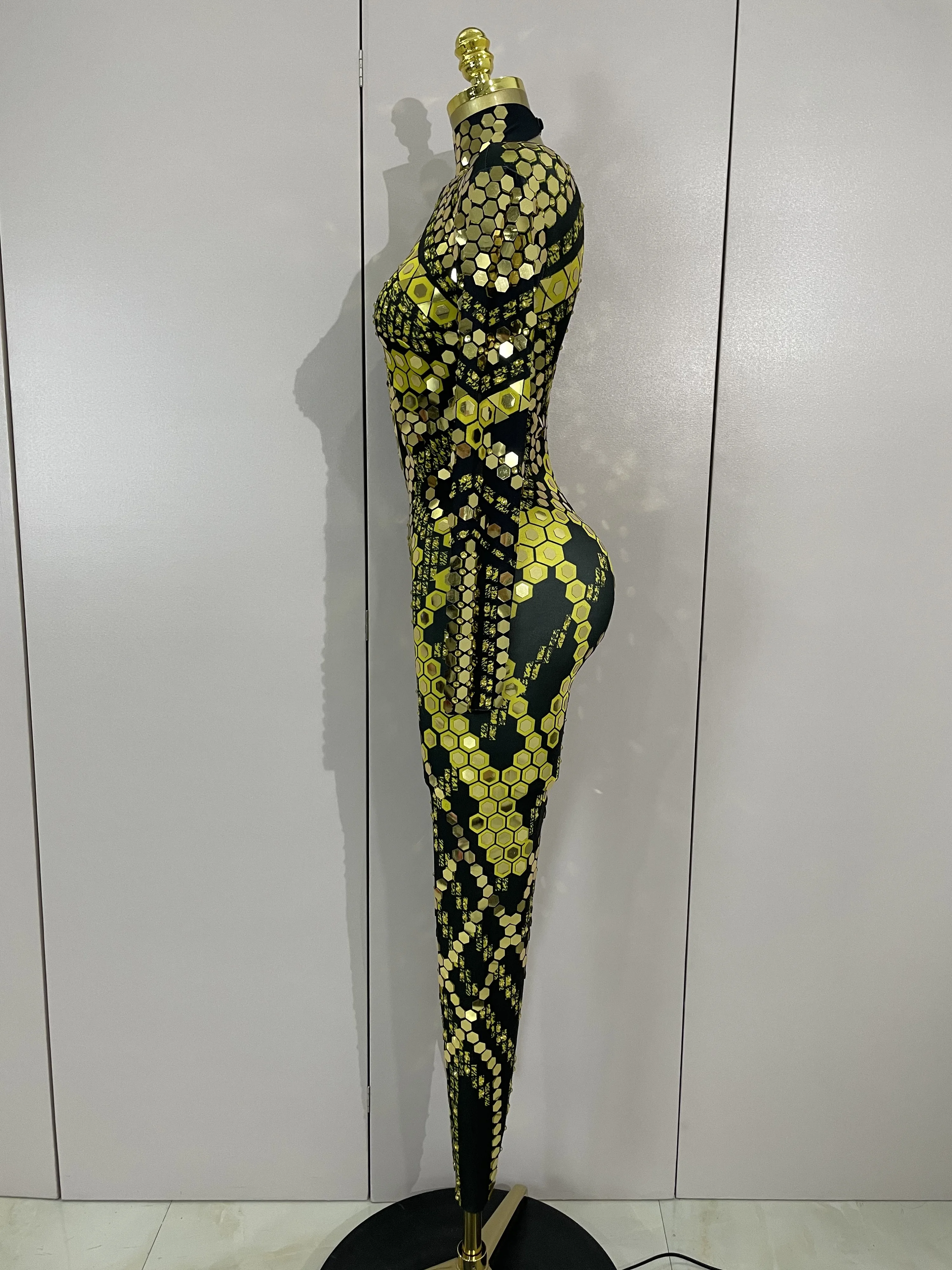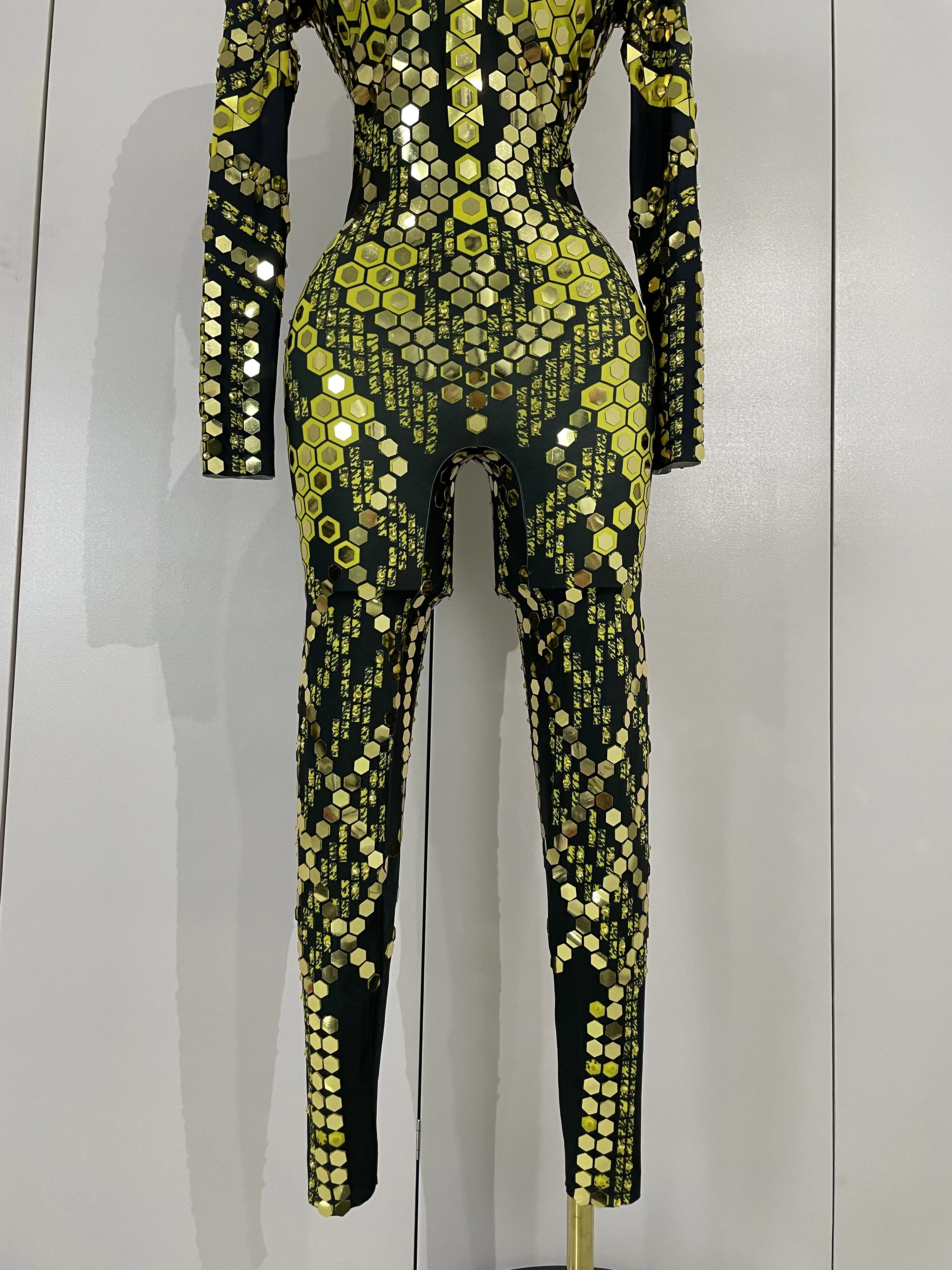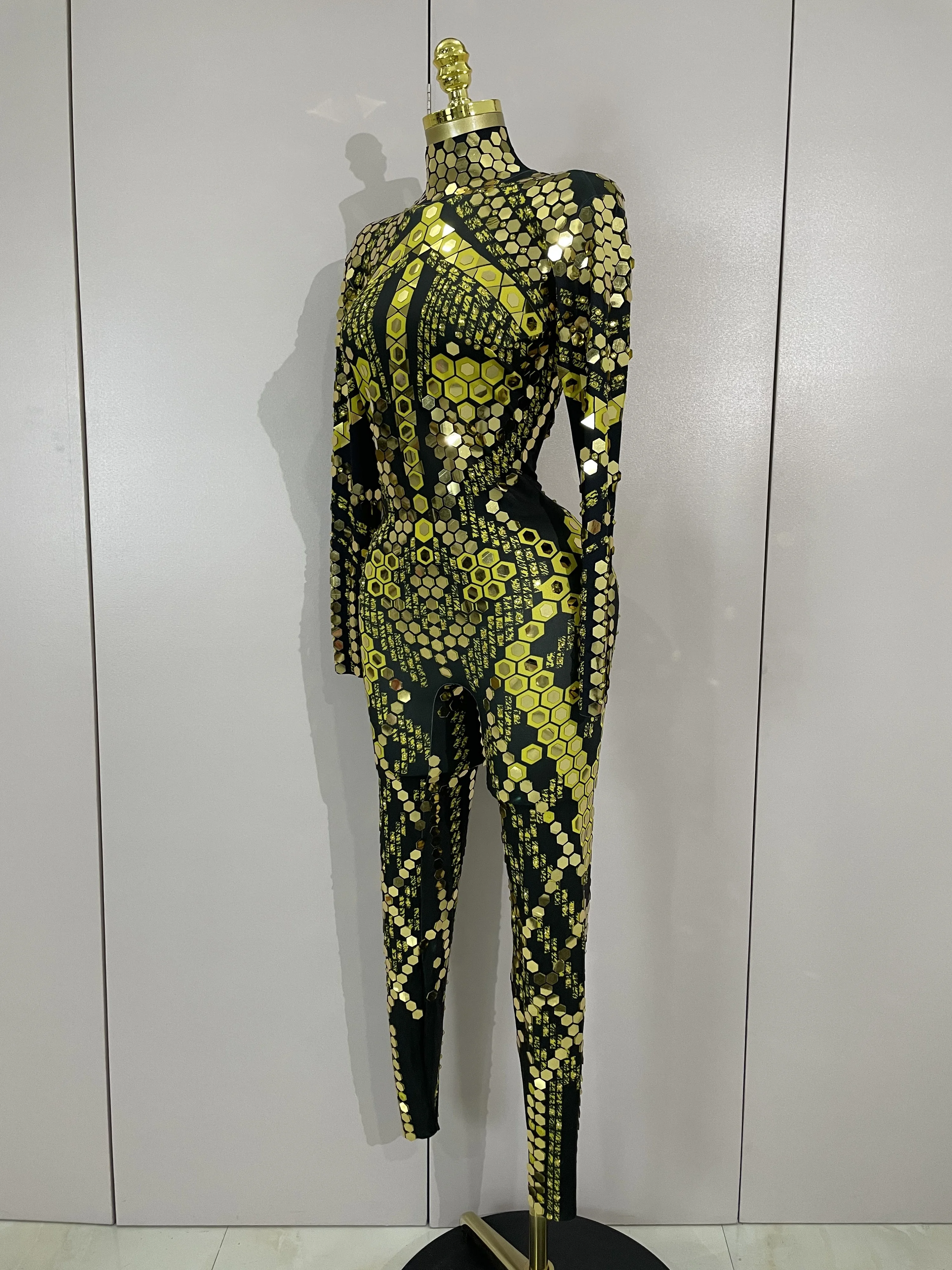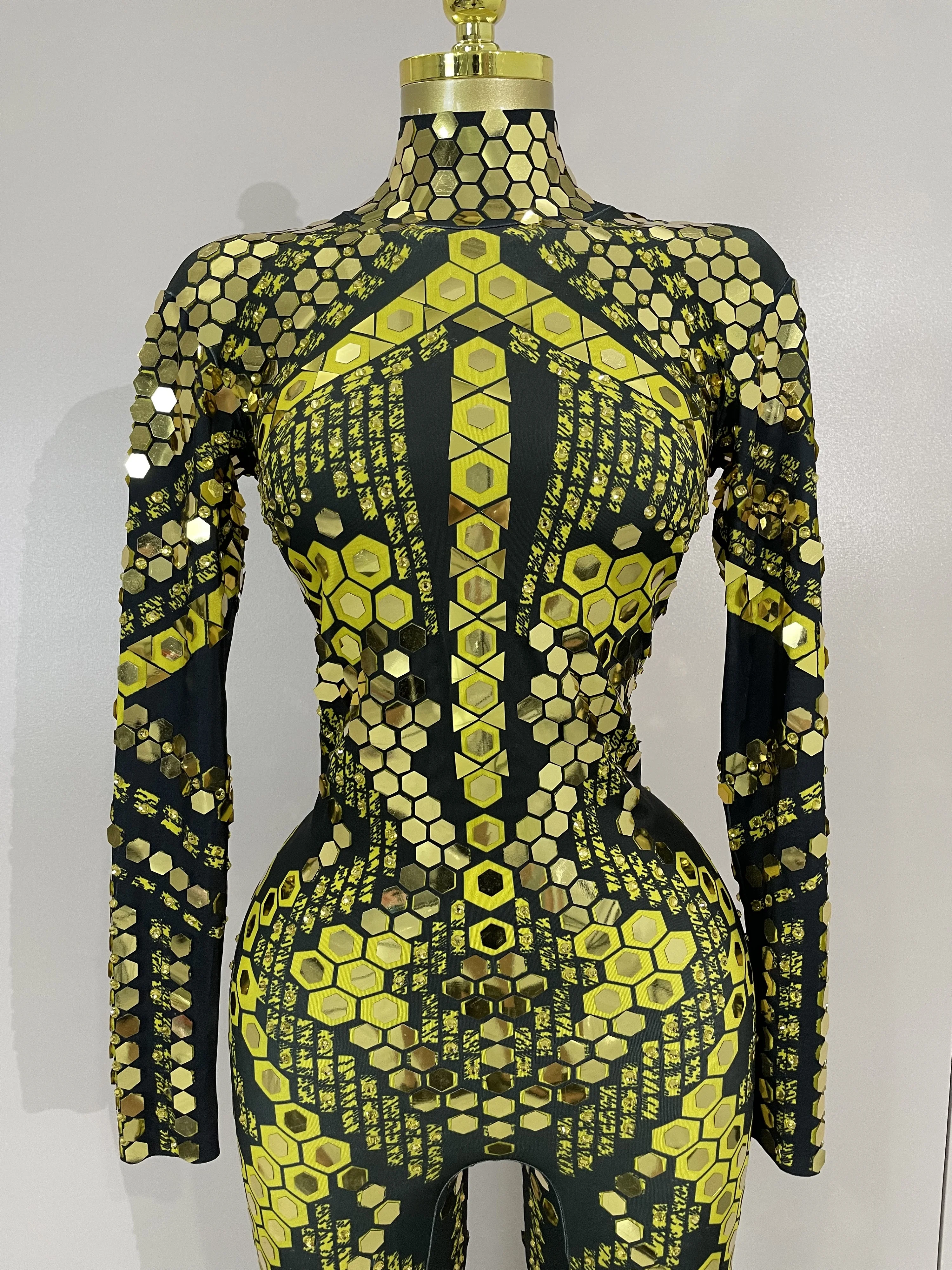 Sexy Shiny Silver Sequins Mirror Black Spandex Jumpsuit 2025 Women Prom Dancer Singer Costume Evening Birthday Show Stage Outfit