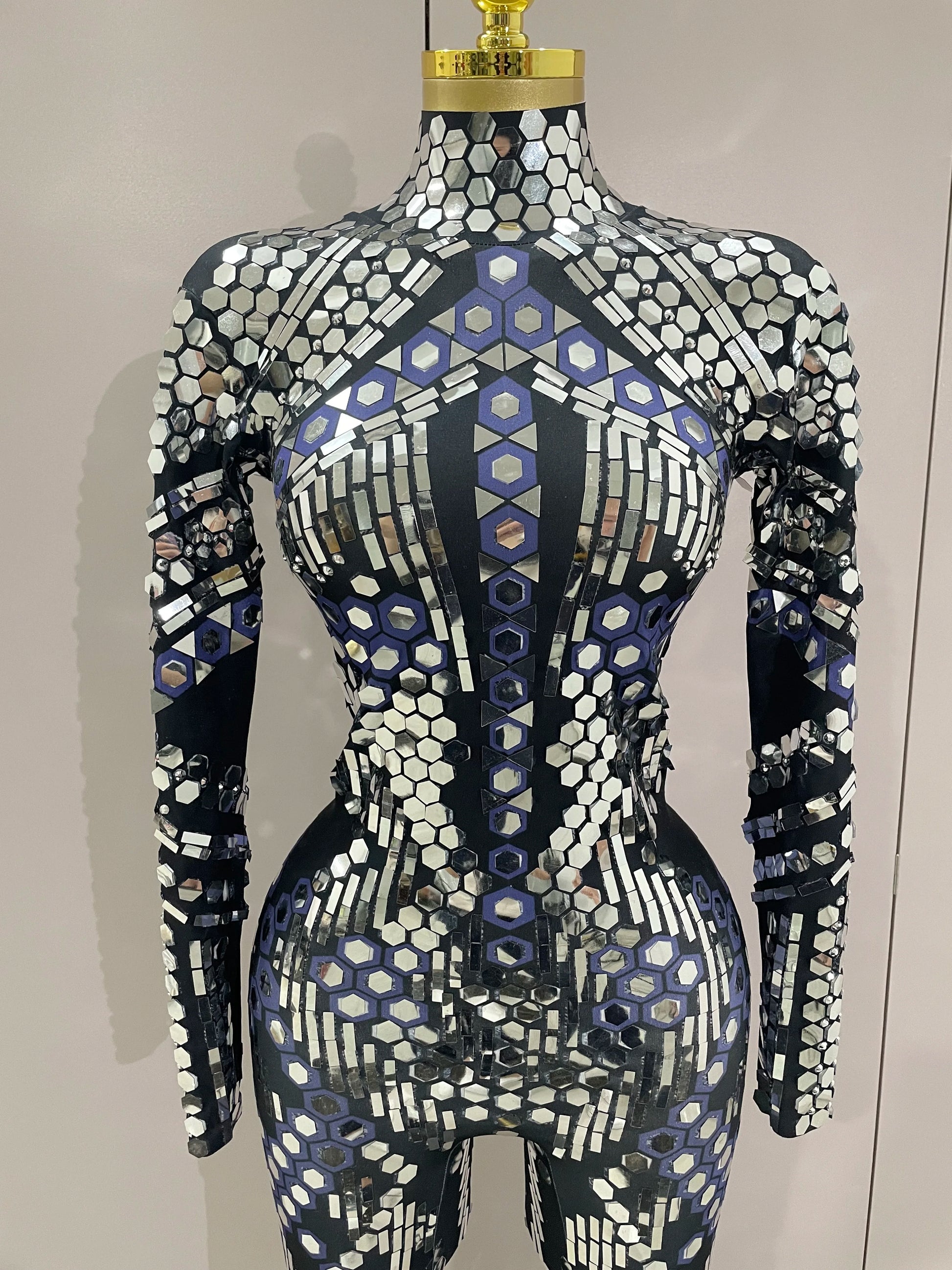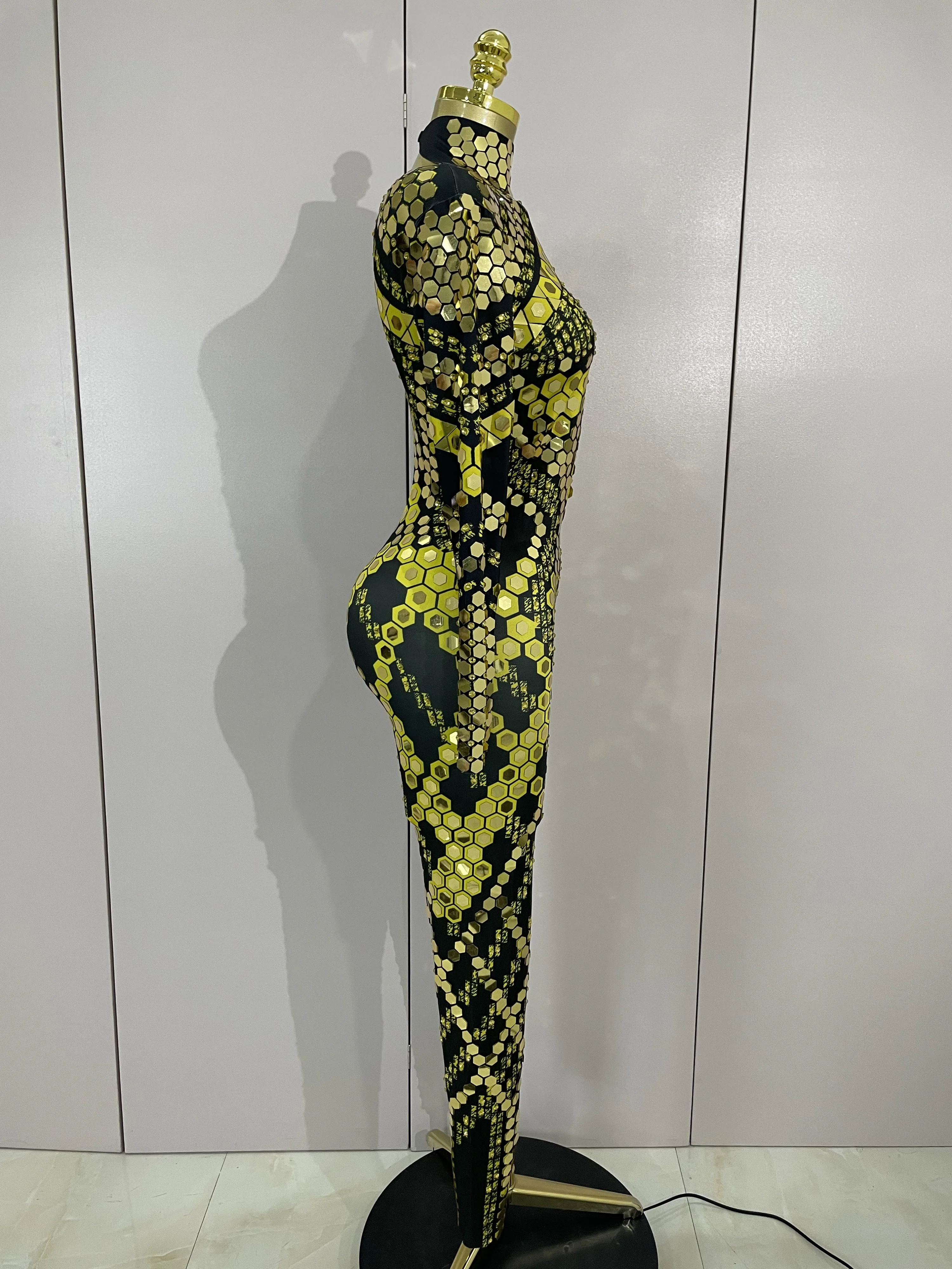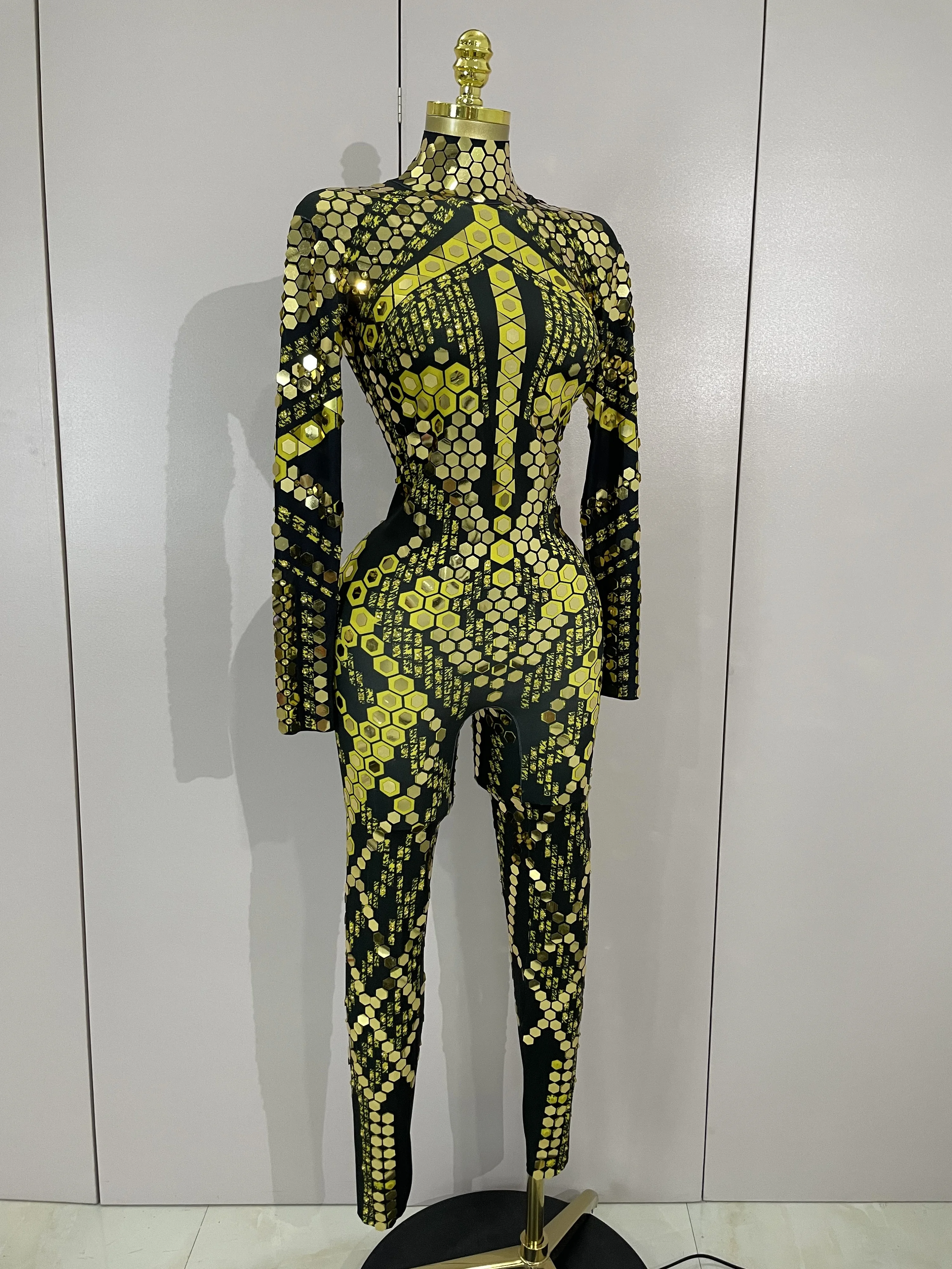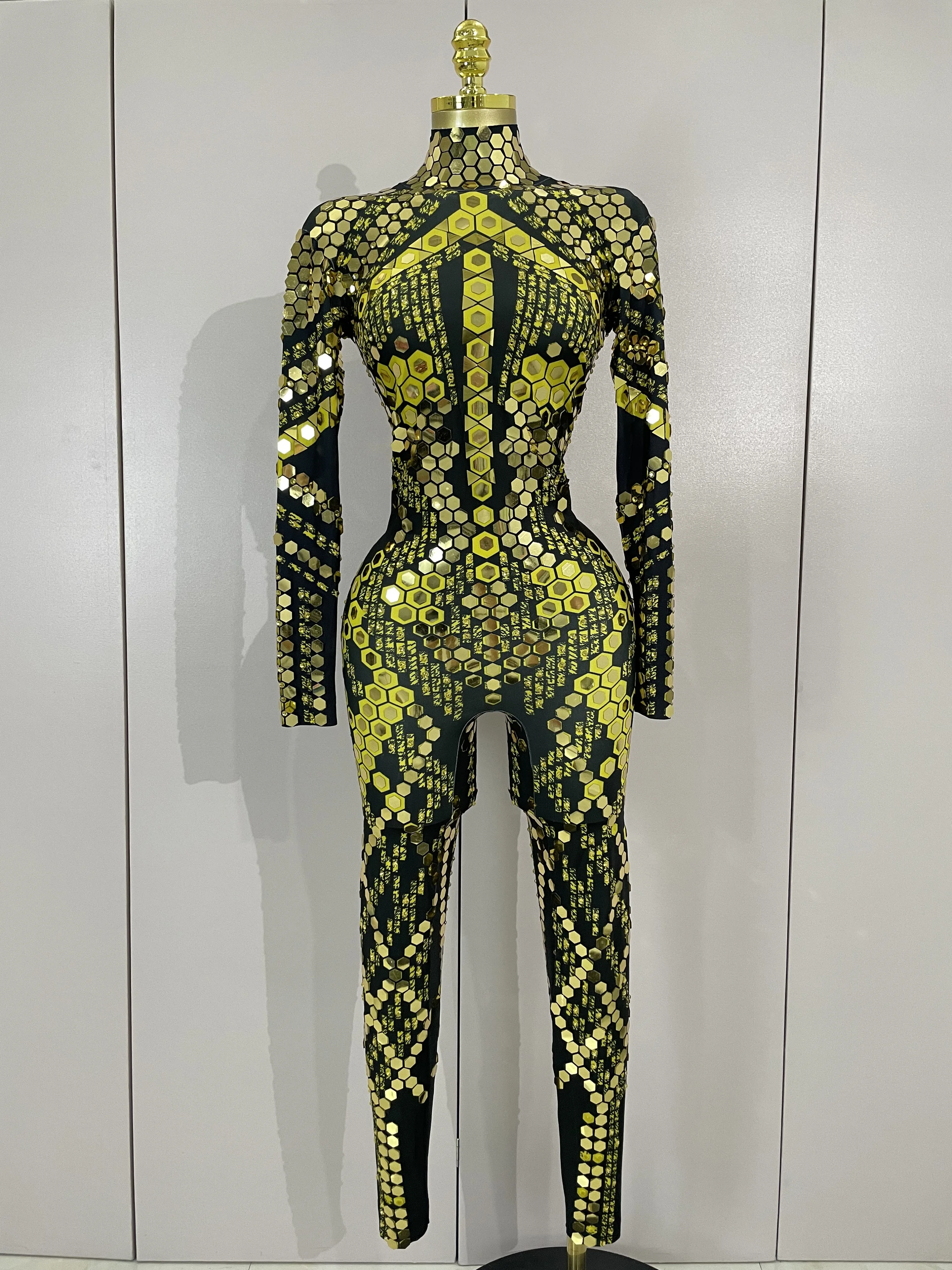 Sexy Shiny Silver Sequins Mirror Black Spandex Jumpsuit 2025 Women Prom Dancer Singer Costume Evening Birthday Show Stage Outfit