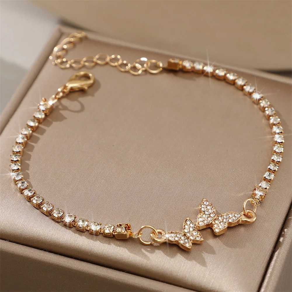 Shiny Exquisite Full Crystal Rhinestone Paved Butterfly Bracelet for Women Luxury Dainty Temperament Banquet Bracelets Jewelry