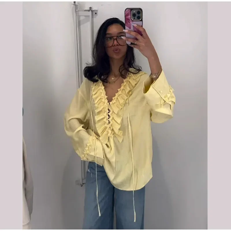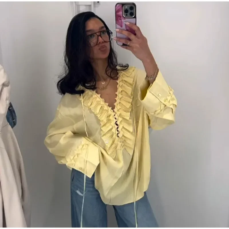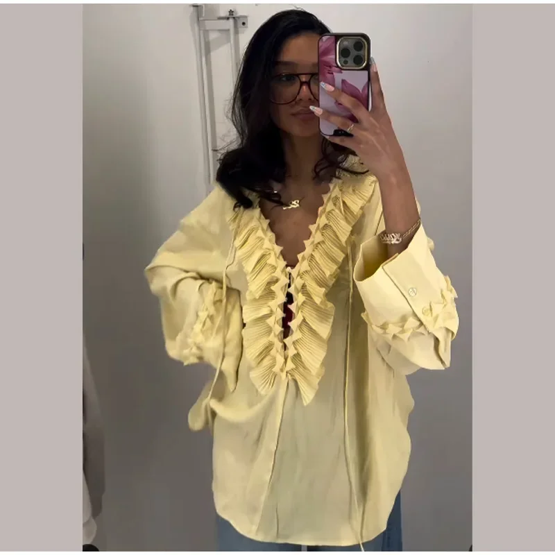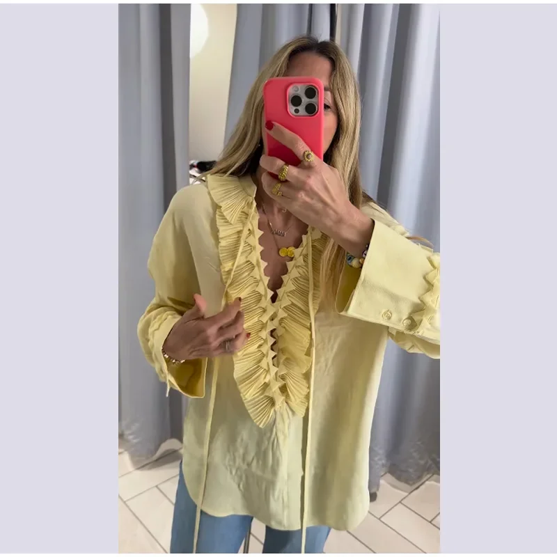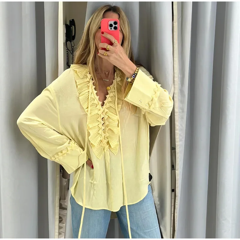 Crafted from elegant chiffon, this blouse combines durability with a flowing, feminine appeal.