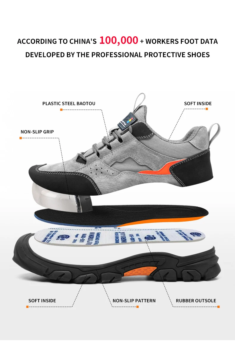 Super light safety shoe£ºIt is like the weight of a pair of running shoes. They can help you to work happily all day without exhausting your feet. With super soft insoles and High elastic sole, your feet are safe and comfortable.?Breathable?upper is very soft?Comfortable, Keep your feet comfortable and breathable.Great for those working on industry, auto manufacturing, construction and machine manufacturing.