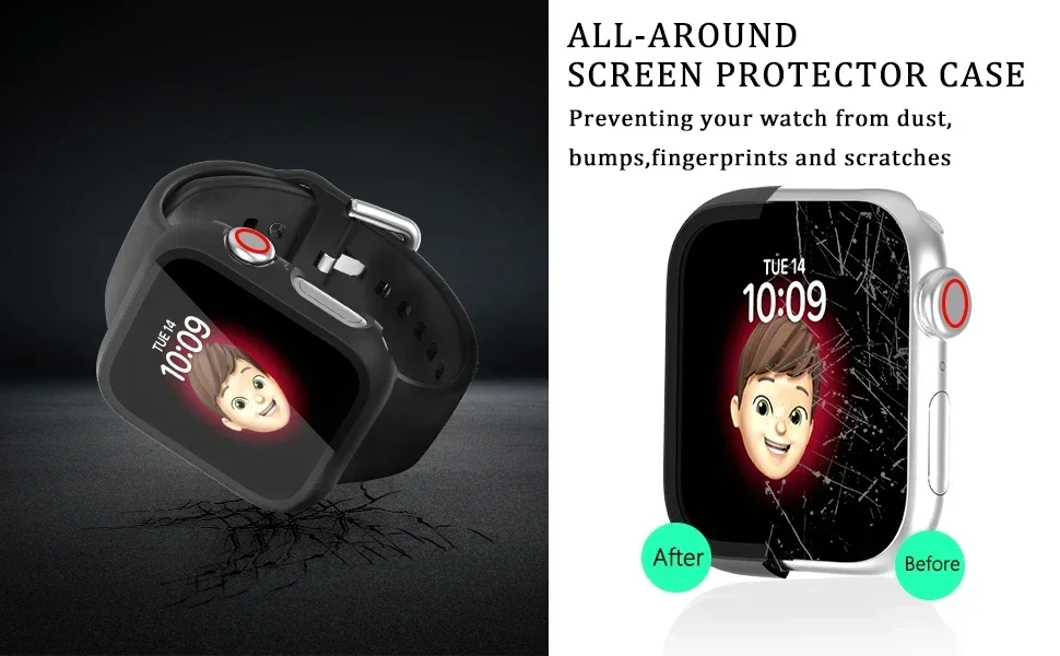 Glass+cover For Apple Watch Case 45mm 41mm 44mm 40mm iWatch 42mm 38mm bumper Screen Protectors apple watch series 9 8 7 6 5 4 3 se Accessories