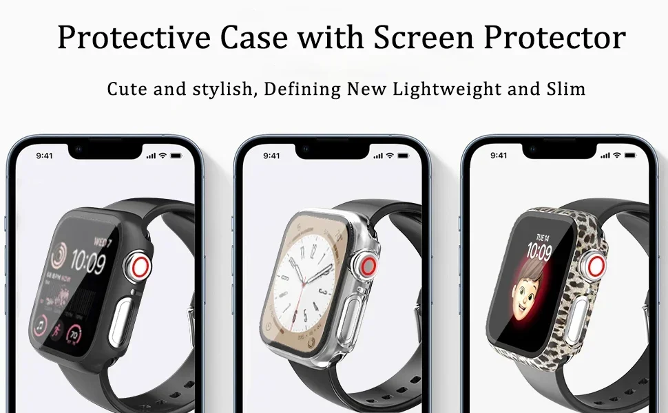 Tempered Glass+Cover For Apple watch Case 45mm 41mm 44mm 40mm 42mm Screen Protector Apple Watch Accessories serie 9 4 5 6 SE 7 8