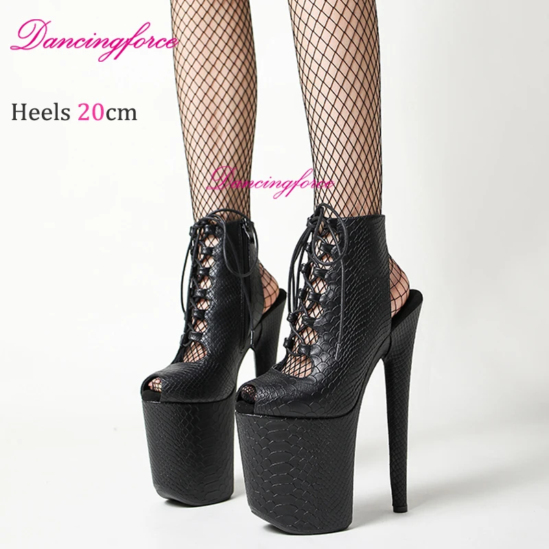 Unisex Sexy 20cm Peep Toe Extreme High Heels Platforms Stripper Sandals Boots Roman Gladiator Pole Dance Shoes Woman EU36-41