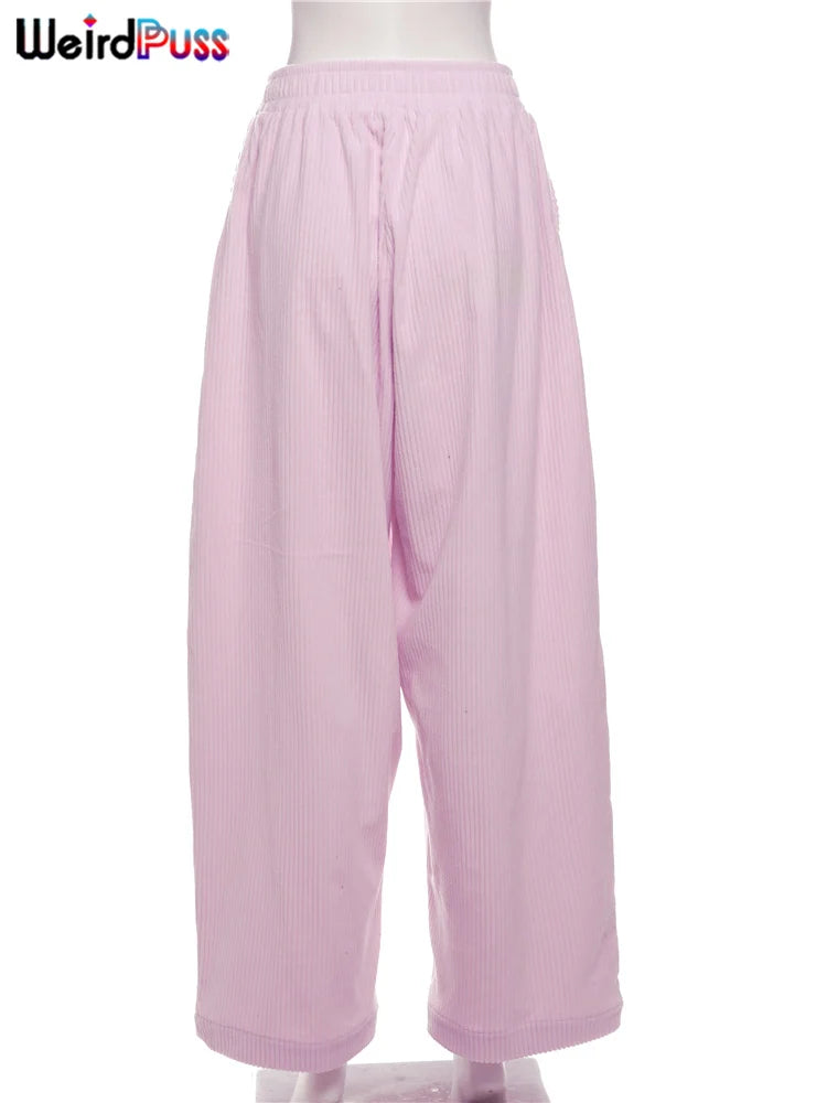 Weird Puss Y2K Casual Wide-Leg Pants Women Autumn Loose Simple Basic Pocket High Waist Trousers Corduroy Streetwear Long Bottoms