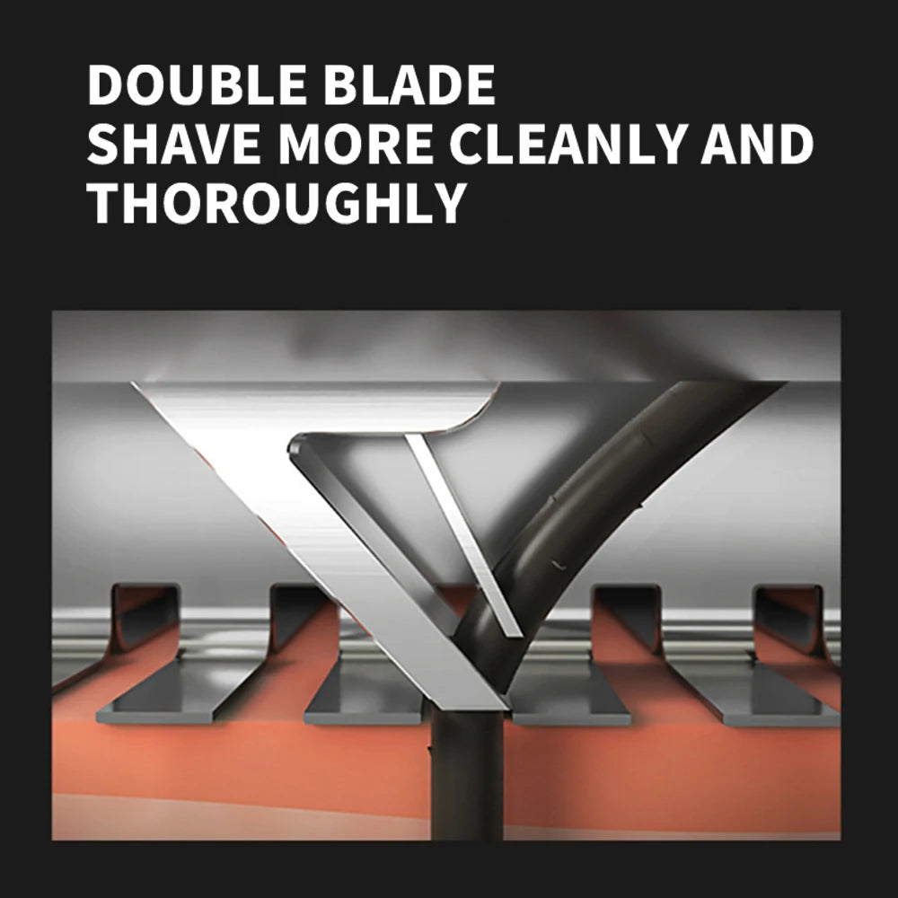 The beard is soft and the growth direction is different, and the knife net itself has a certain thickness, it is easy to leave stubble. With double-layer blades, the auxiliary knife first lifts the beard, and then the main knife quickly cuts the beard, resulting in a cleaner and thorough shave.