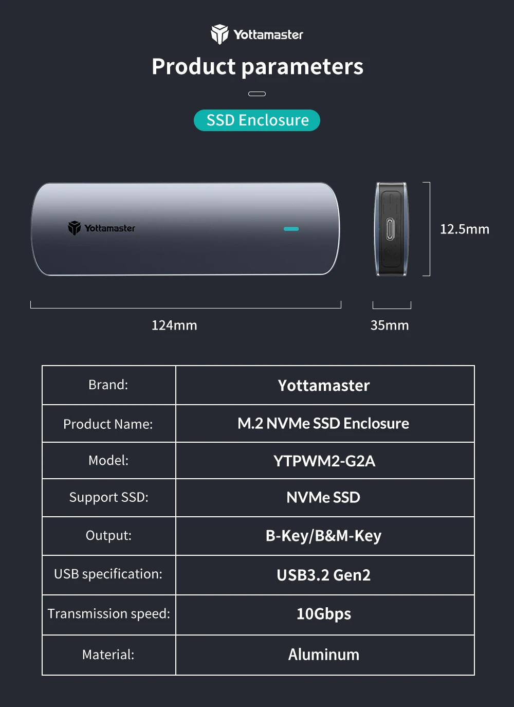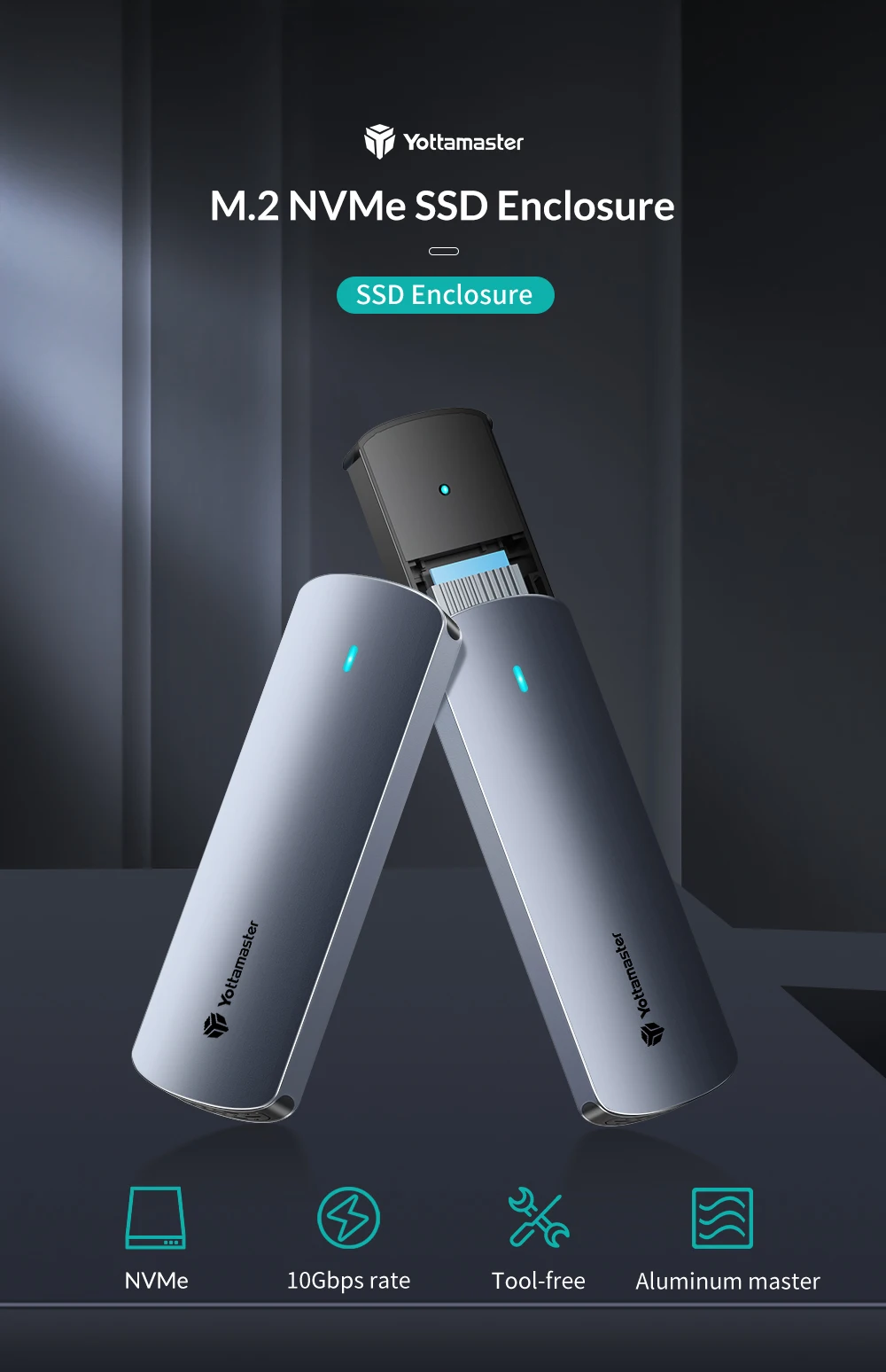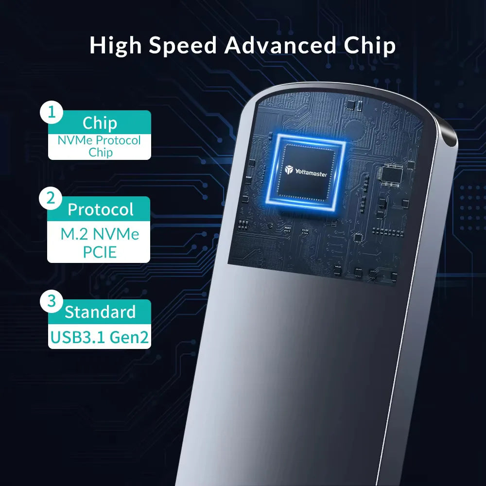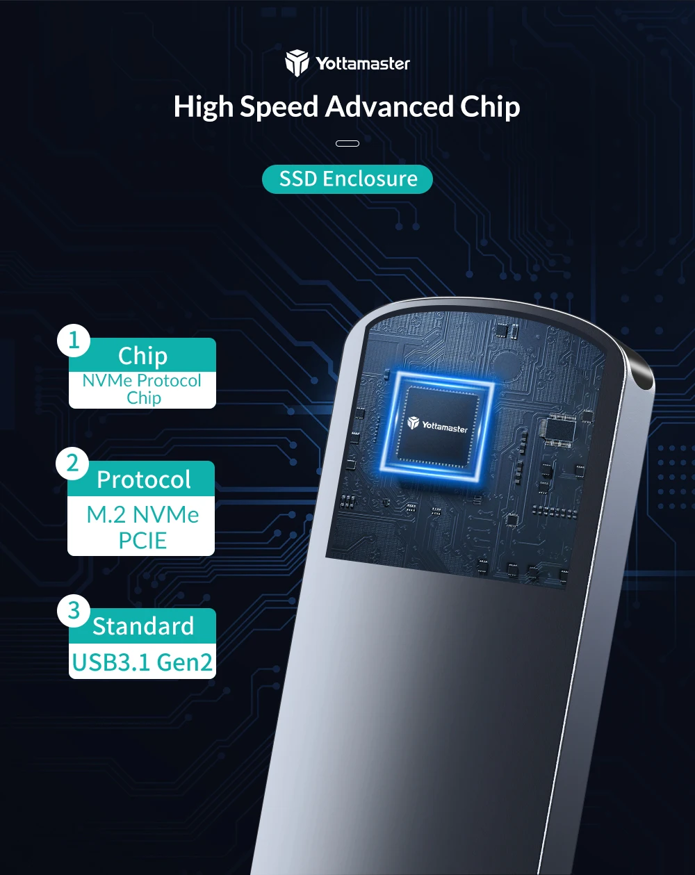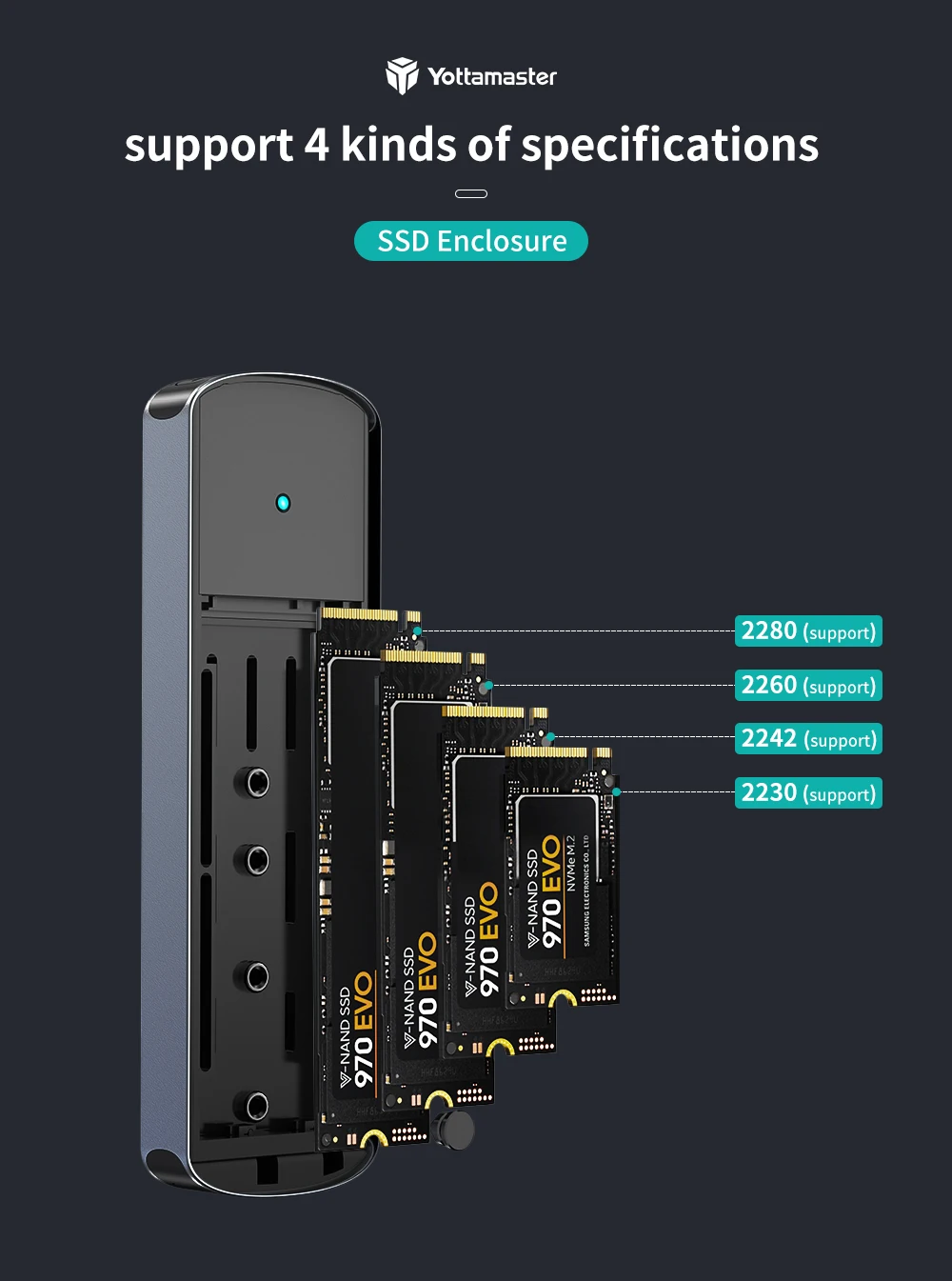 Yottamaster USB3.2 NVMe Case M.2 SSD EnclosureType C 10Gbps NVMe PCIE Solid State Drive Case Adapter Storage Box for PC Laptop
