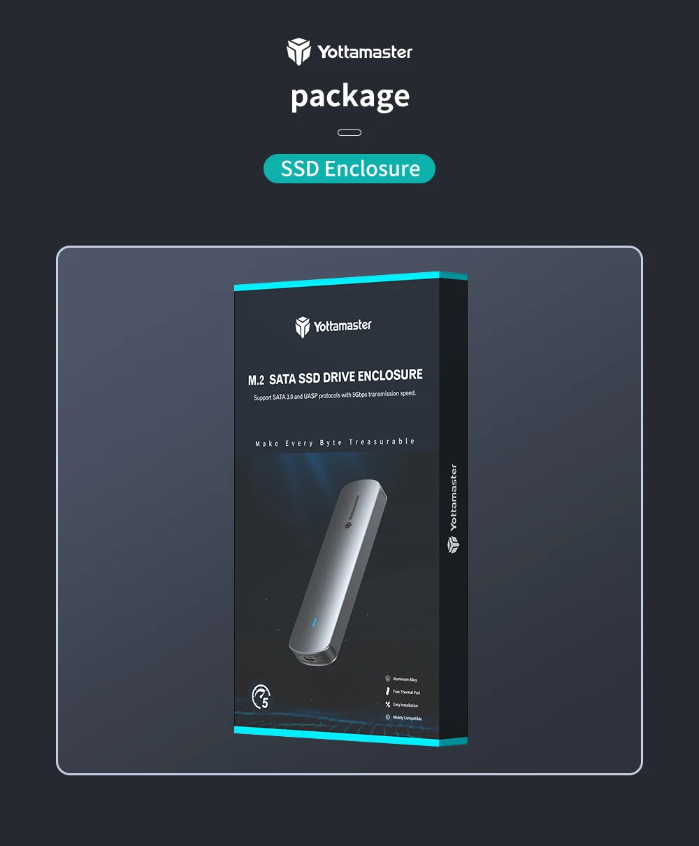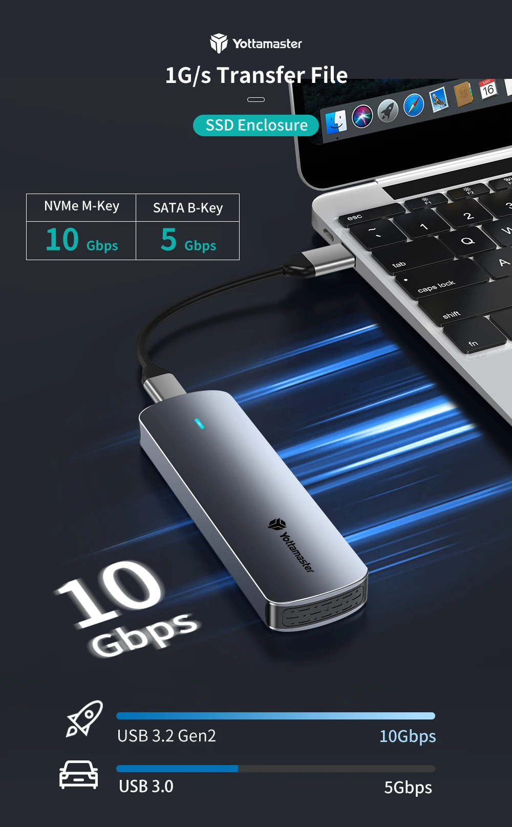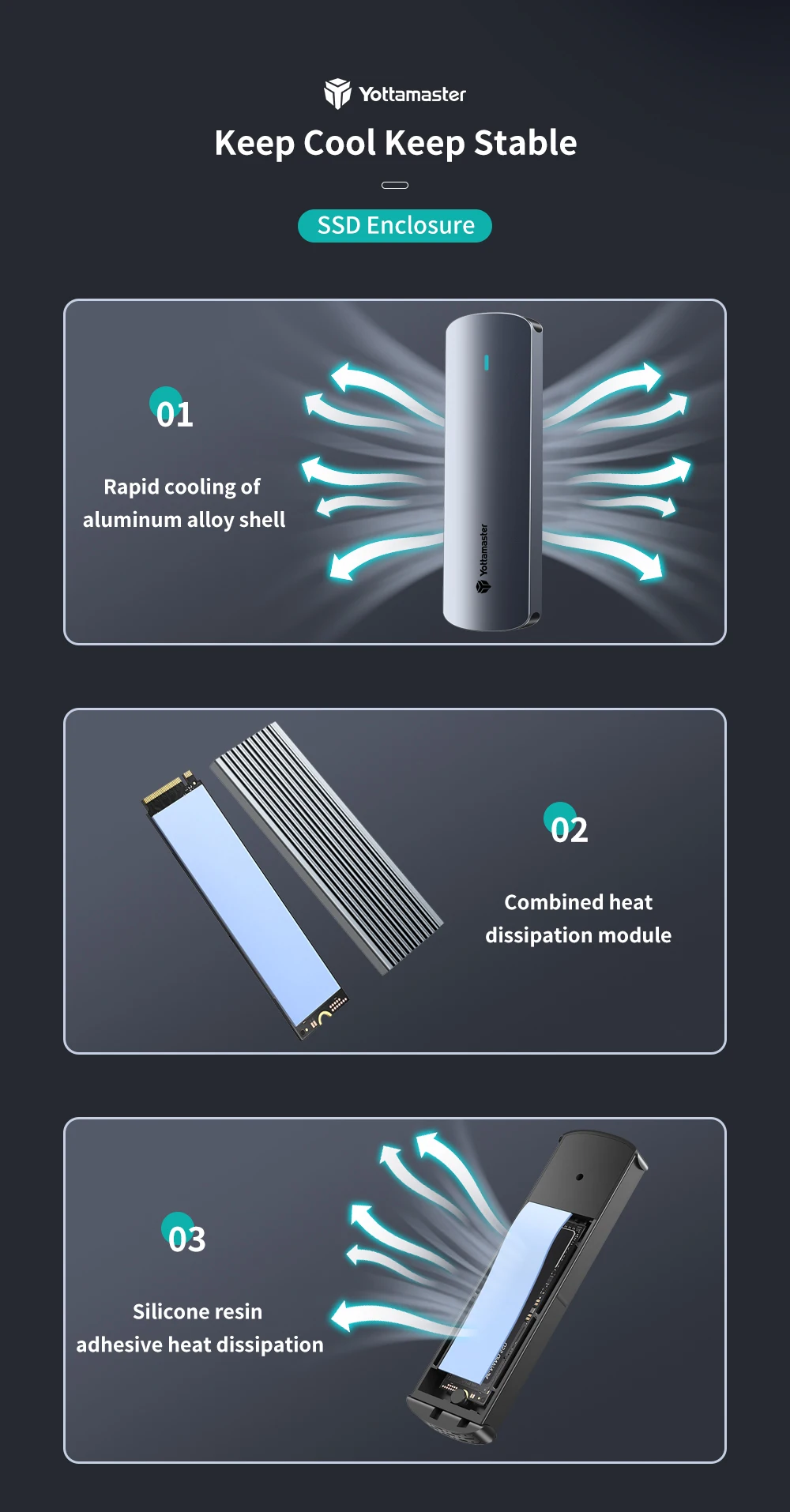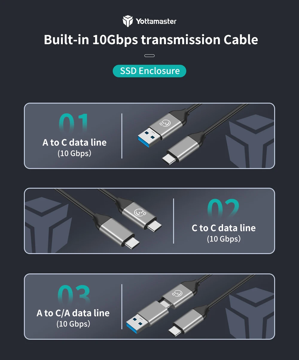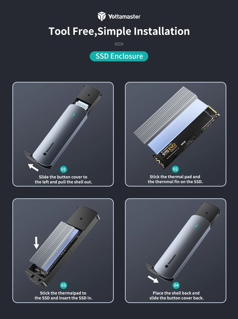 Yottamaster USB3.2 NVMe Case M.2 SSD EnclosureType C 10Gbps NVMe PCIE Solid State Drive Case Adapter Storage Box for PC Laptop